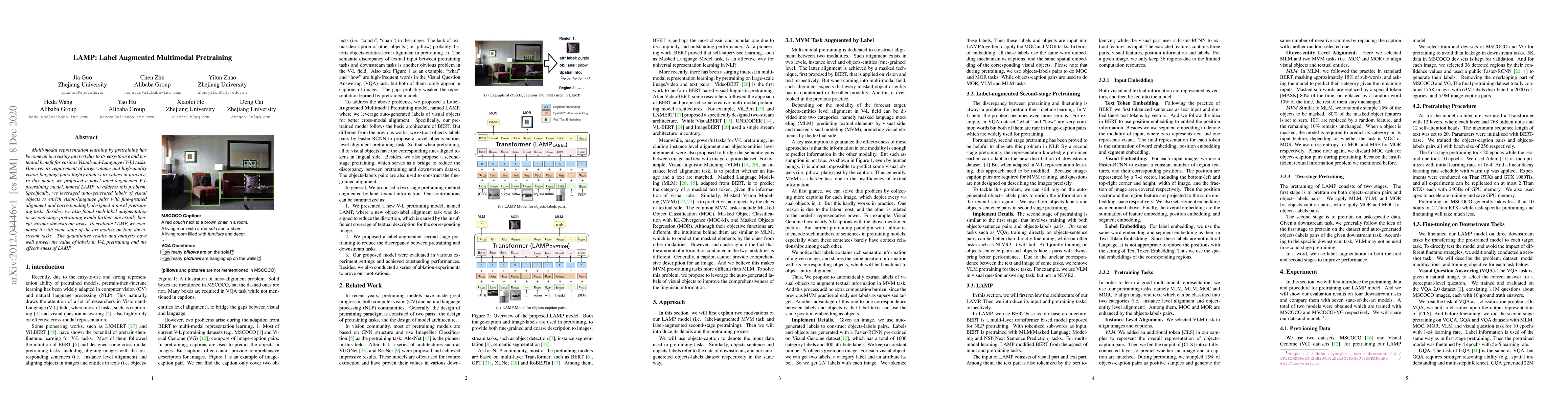 LAMP proposes a novel label-augmented multimodal pretraining model to enrich vision-language pairs with fine-grained alignment using auto-generated visual object labels, demonstrating improved performance on various downstream tasks compared to state-of-the-art models.