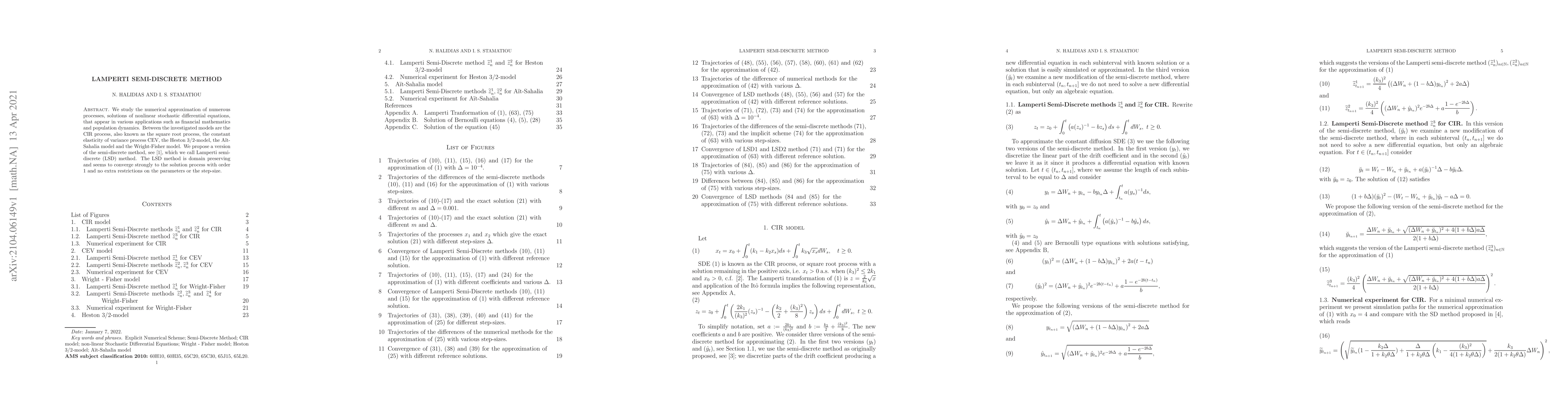 This paper introduces the Lamperti semi-discrete method for approximating solutions to nonlinear stochastic differential equations in finance and population dynamics, showing strong convergence with order 1.
