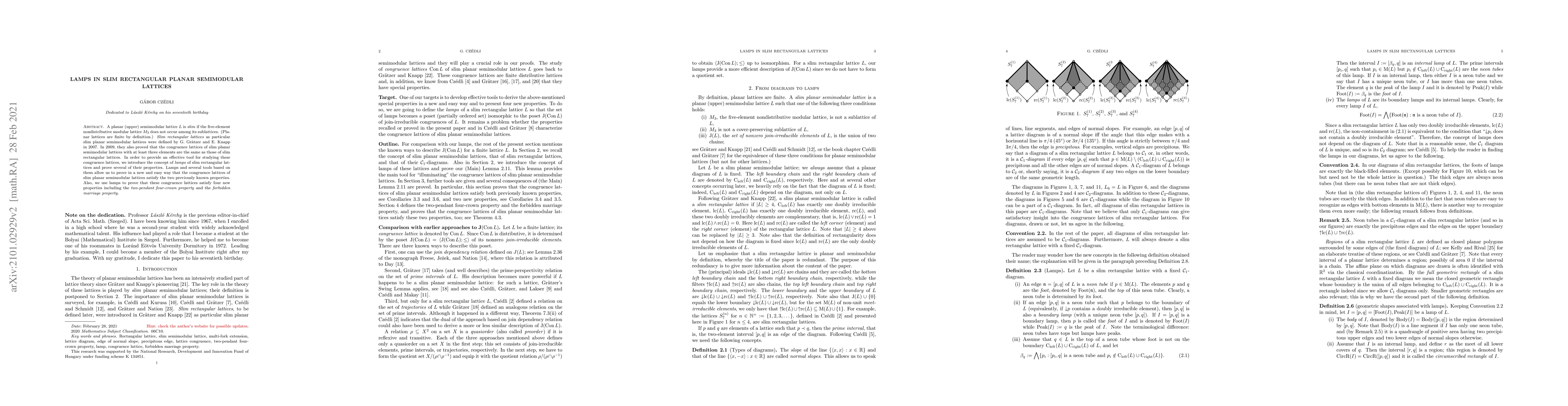 This paper introduces the concept of lamps in slim rectangular planar semimodular lattices, providing a new tool for studying their congruence lattices. It proves several properties of these lamps and uses them to establish both previously known and four new properties for the congruence lattices.