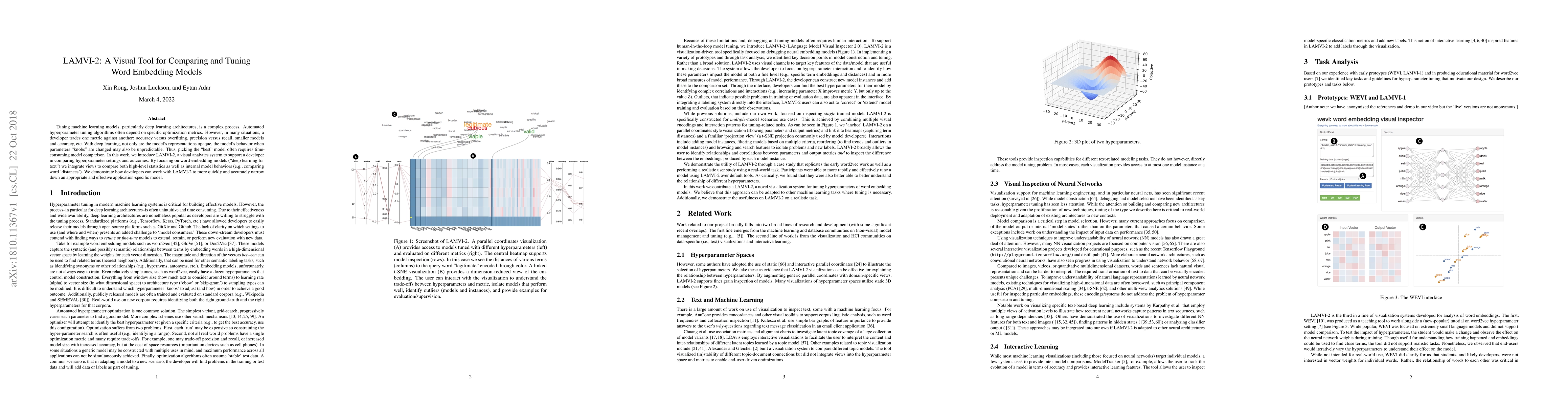 LAMVI-2 is a visual tool for comparing and tuning word embedding models, helping developers quickly find effective hyperparameters and model outcomes.