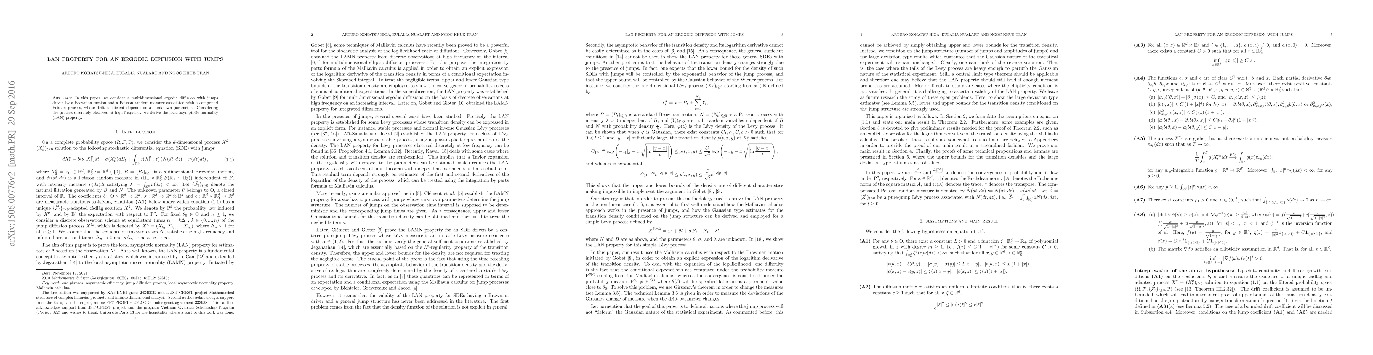 This paper investigates a multidimensional ergodic diffusion with jumps driven by Brownian motion and a Poisson random measure. It establishes the local asymptotic normality (LAN) property for the process when observed at high frequency.