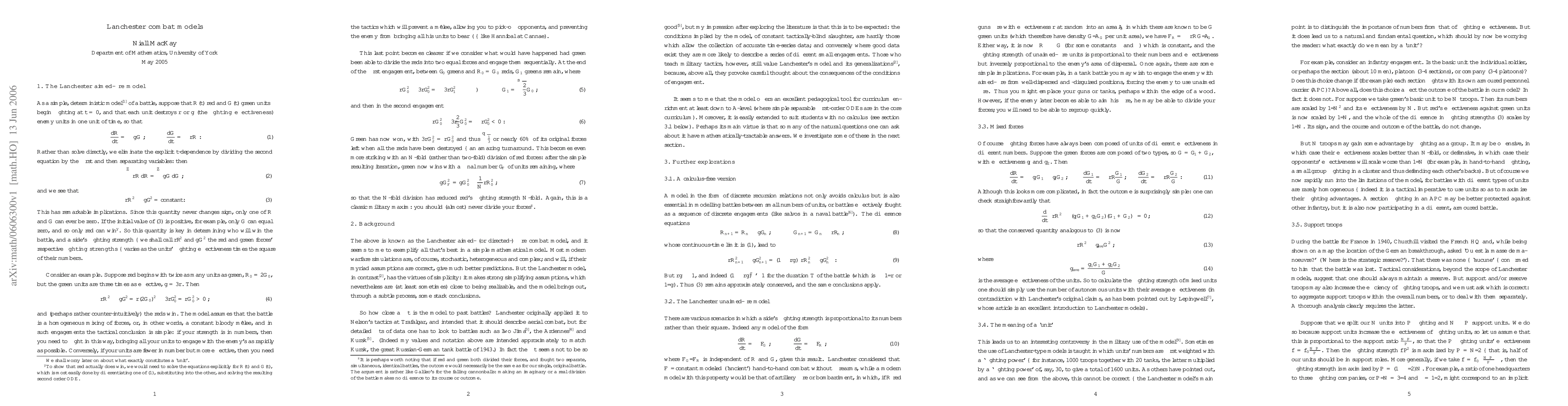 This paper explores Lanchester combat models, providing an overview of their pedagogical possibilities and introducing various extensions to the basic aimed-fire model. It highlights key topics such as unaimed-fire, mixed forces, and asymmetric models, with implications for understanding combat dynamics.