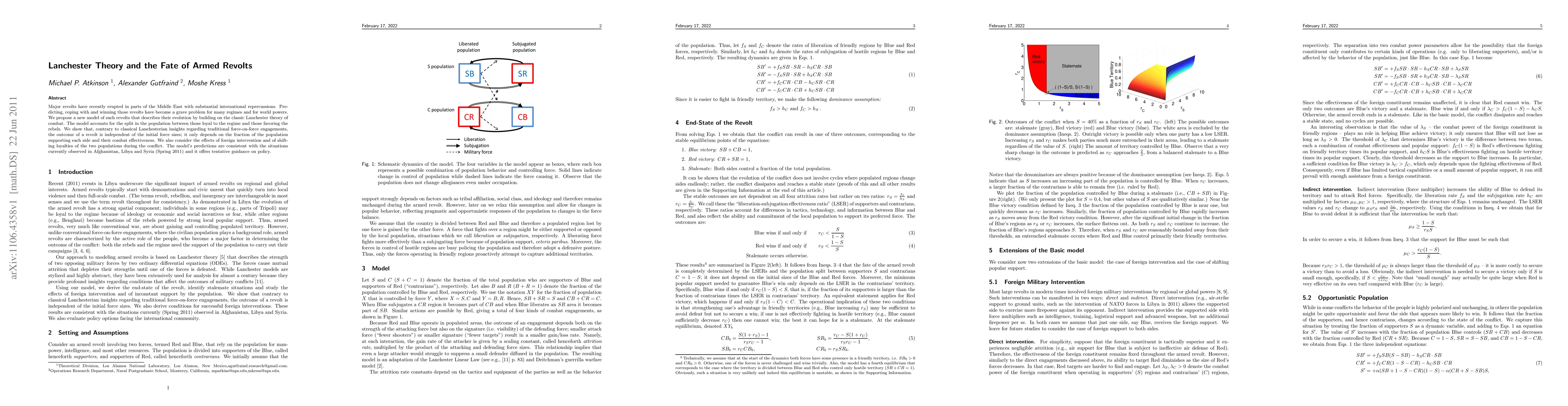 A new model uses Lanchester theory to predict the fate of armed revolts, finding that outcomes depend on population split and combat effectiveness, not initial force sizes.