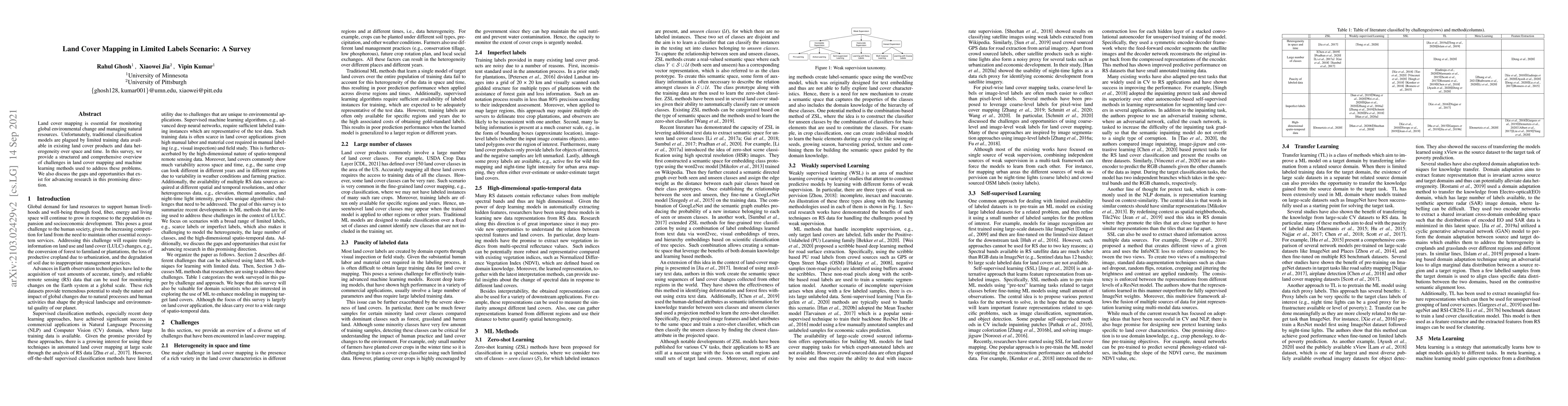 This paper surveys challenges in land cover mapping due to limited training data and data heterogeneity, and reviews machine learning methods addressing these issues, highlighting research gaps and future opportunities.