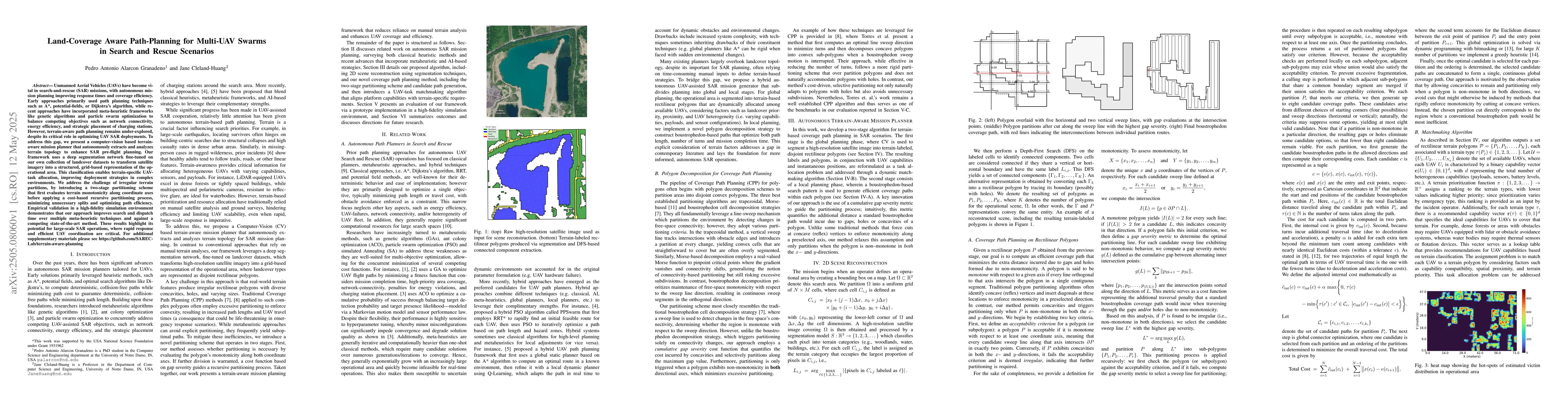 This work stands out by focusing on terrain-aware path planning for UAV swarms in SAR missions, integrating computer vision and deep learning techniques to optimize deployment strategies in complex environments.