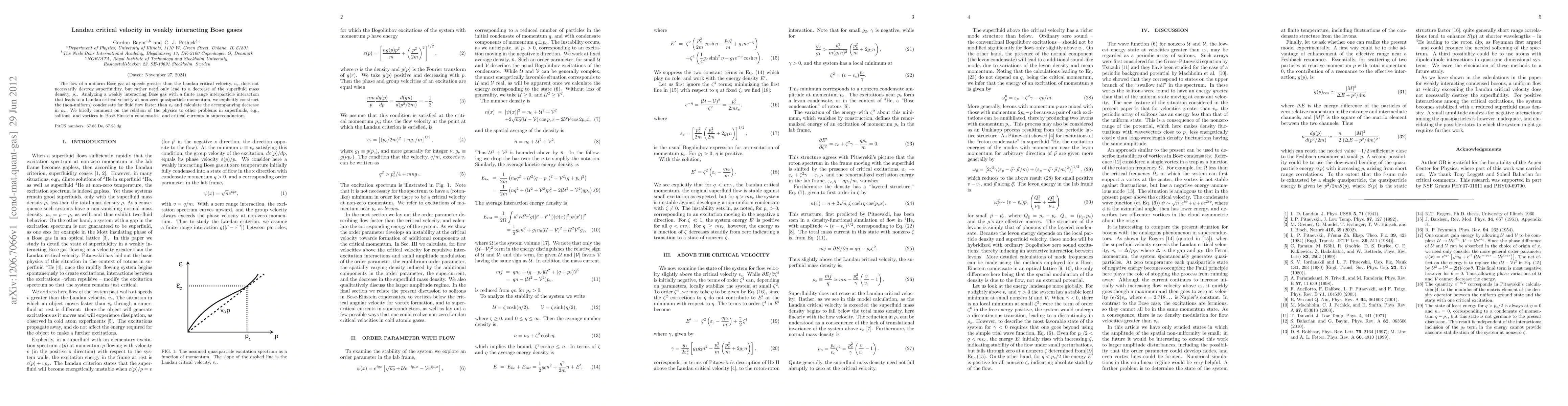 This paper investigates the behavior of weakly interacting Bose gases when flowing at speeds above the Landau critical velocity, demonstrating that superfluidity is not destroyed but results in a reduced superfluid mass density. The study constructs a non-uniform condensate for fluid flow beyond v_c and discusses its implications on related phenomena like solitons, vortices, and critical currents in superconductors.