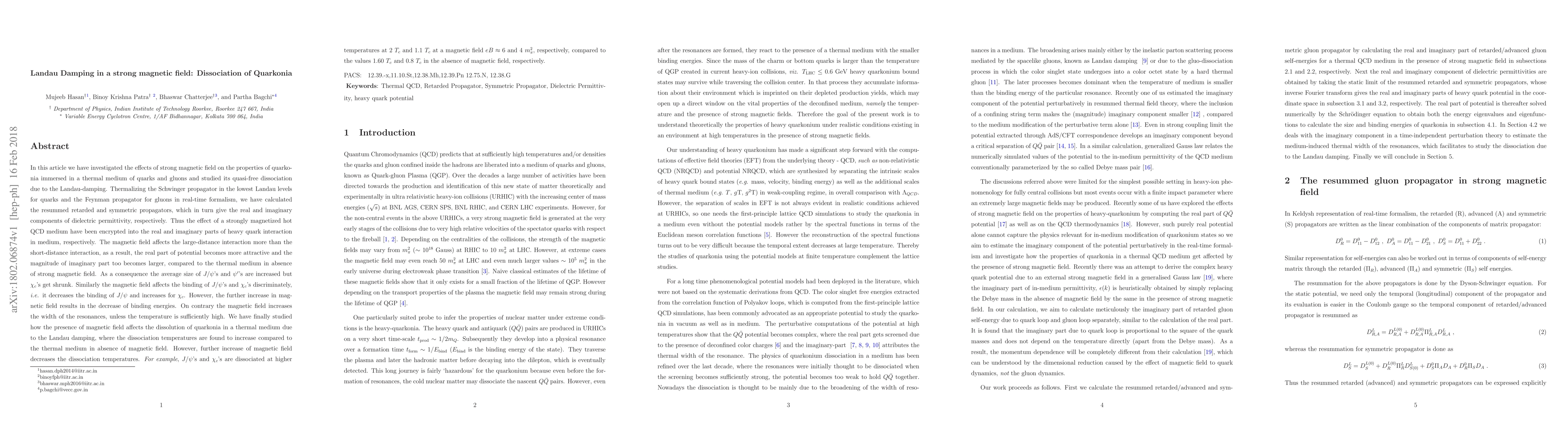 We have investigated the effects of strong magnetic field on the properties of quarkonia immersed in a thermal medium of quarks and gluons and studied its quasi-free dissociation due to the Landau-damping. Thermalizing the Schwinger propagator in the lowest Landau levels for quarks and the Feynman propagator for gluons in real-time formalism, we have calculated the resummed retarded and symmetric propagators, which in turn give the real and imaginary components of dielectric permittivity, respectively. The magnetic field affects the large-distance interaction more than the short-distance interaction, as a result, the real part of potential becomes more attractive and the magnitude of imaginary part too becomes larger, compared to the thermal medium in absence of strong magnetic field. As a consequence the average size of $J/\psi$'s and $\psi^\prime$'s are increased but $\chi_c$'s get shrunk. Similarly the magnetic field affects the binding of $J/\psi$'s and $\chi_c$'s discriminately, i.e. it decreases the binding of $J/\psi$ and increases for $\chi_c$. However, the further increase in magnetic field results in the decrease of binding energies. On contrary the magnetic field increases the width of the resonances, unless the temperature is sufficiently high. We have finally studied how the presence of magnetic field affects the dissolution of quarkonia in a thermal medium due to the Landau damping, where the dissociation temperatures are found to increase compared to the thermal medium in absence of magnetic field. However, further increase of magnetic field decreases the dissociation temperatures. For example, $J/\psi$'s and $\chi_c$'s are dissociated at higher temperatures at 2 $T_c$ and 1.1 $T_c$ at a magnetic field $eB \approx 6~{\rm{and}}~4~m_\pi^2$, respectively, compared to the values 1.60 $T_c$ and 0.8 $T_c$ in the absence of magnetic field, respectively.