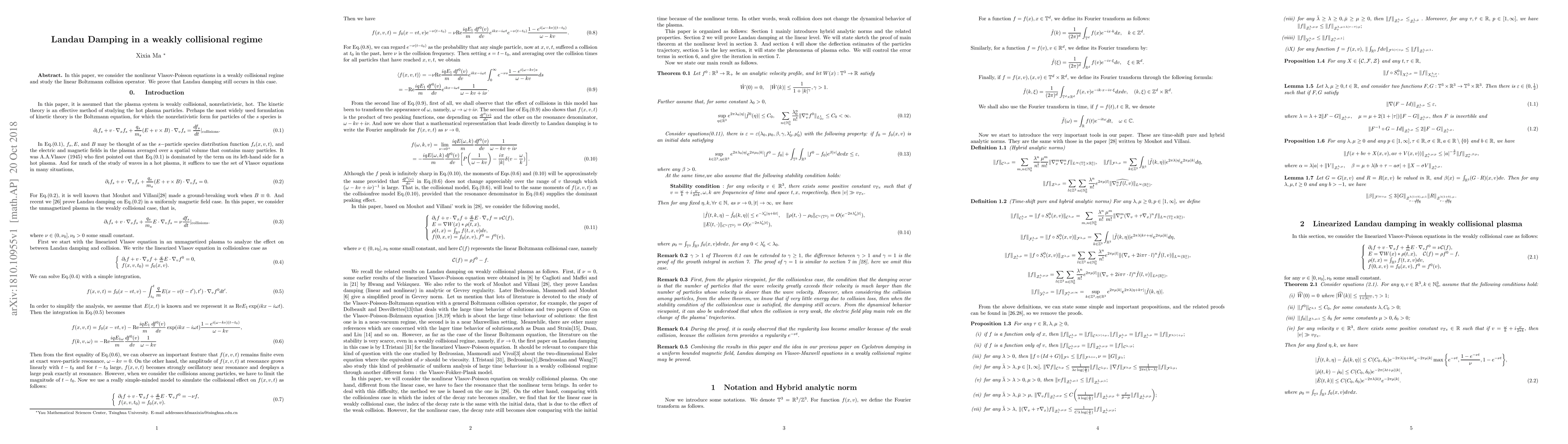This research demonstrates that Landau damping, a phenomenon in plasma physics, persists even in a weakly collisional regime. The study utilizes the nonlinear Vlasov-Poisson equations and the linear Boltzmann collision operator to prove this.