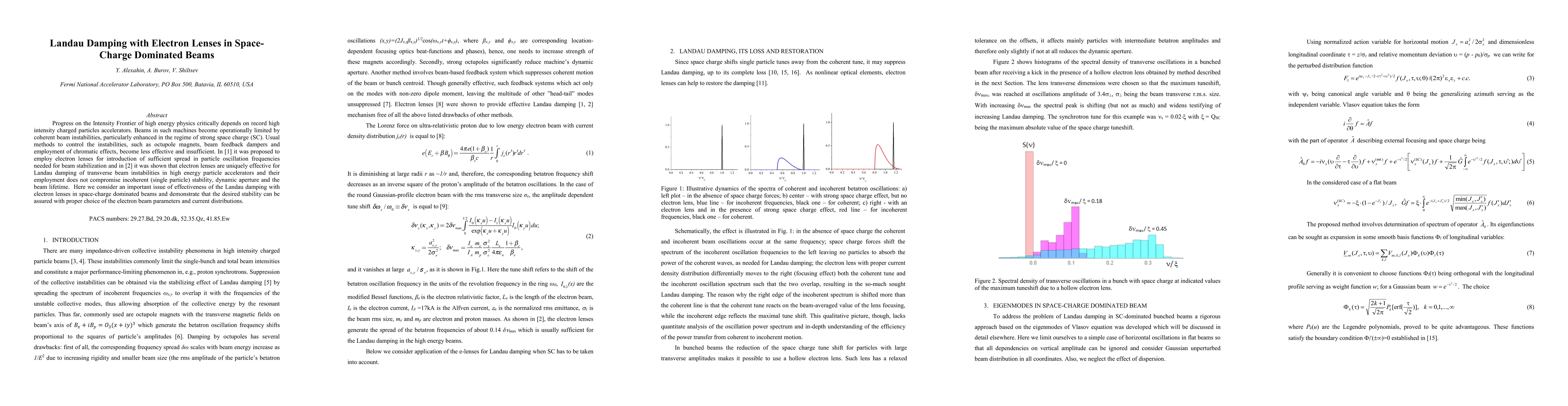 Progress on the Intensity Frontier of high energy physics critically depends on record high intensity charged particles accelerators. Beams in such machines become operationally limited by coherent beam instabilities, particularly enhanced in the regime of strong space charge (SC). Usual methods to control the instabilities, such as octupole magnets, beam feedback dampers and employment of chromatic effects, become less effective and insufficient. In [1] it was proposed to employ electron lenses for introduction of sufficient spread in particle oscillation frequencies needed for beam stabilization and in [2] it was shown that electron lenses are uniquely effective for Landau damping of transverse beam instabilities in high energy particle accelerators and their employment does not compromise incoherent (single particle) stability, dynamic aperture and the beam lifetime. Here we consider an important issue of effectiveness of the Landau damping with electron lenses in space-charge dominated beams and demonstrate that the desired stability can be assured with proper choice of the electron beam parameters and current distributions.