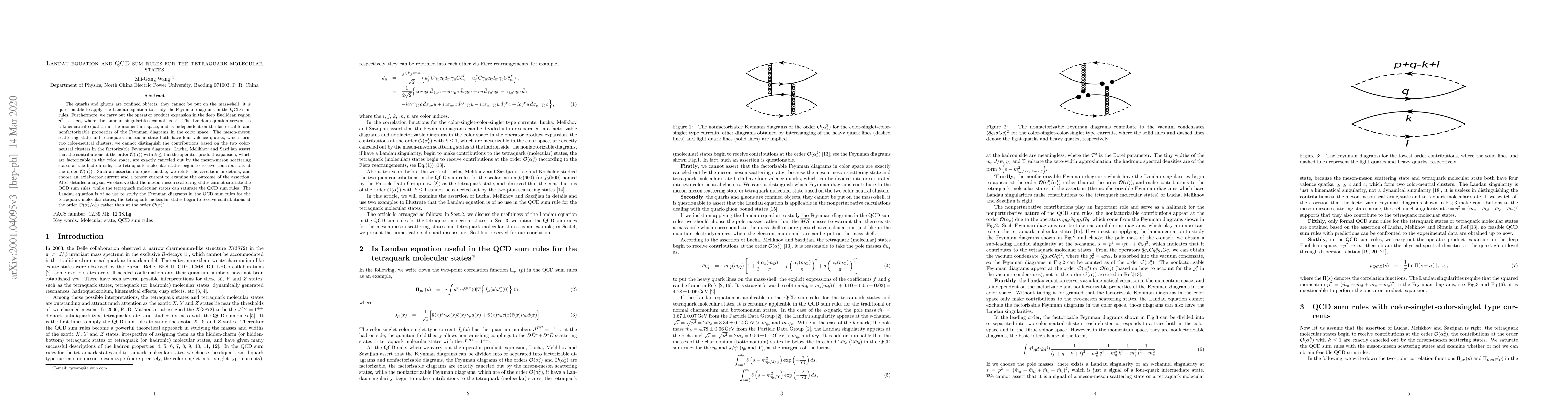 The quarks and gluons are confined objects, they cannot be put on the mass-shell, it is questionable to apply the Landau equation to study the Feynman diagrams in the QCD sum rules. Furthermore, we carry out the operator product expansion in the deep Euclidean region $p^2\to -\infty$, where the Landau singularities cannot exist. The Landau equation servers as a kinematical equation in the momentum space, and is independent on the factorizable and nonfactorizable properties of the Feynman diagrams in the color space. The meson-meson scattering state and tetraquark molecular state both have four valence quarks, which form two color-neutral clusters, we cannot distinguish the contributions based on the two color-neutral clusters in the factorizable Feynman diagrams. Lucha, Melikhov and Sazdjian assert that the contributions at the order $\mathcal{O}(\alpha_s^k)$ with $k\leq1$ in the operator product expansion, which are factorizable in the color space, are exactly canceled out by the meson-meson scattering states at the hadron side, the tetraquark molecular states begin to receive contributions at the order $\mathcal{O}(\alpha_s^2)$. Such an assertion is questionable, we refute the assertion in details, and choose an axialvector current and a tensor current to examine the outcome of the assertion. After detailed analysis, we observe that the meson-meson scattering states cannot saturate the QCD sum rules, while the tetraquark molecular states can saturate the QCD sum rules. The Landau equation is of no use to study the Feynman diagrams in the QCD sum rules for the tetraquark molecular states, the tetraquark molecular states begin to receive contributions at the order $\mathcal{O}(\alpha_s^0/\alpha_s^1)$ rather than at the order $\mathcal{O}(\alpha_s^2)$.