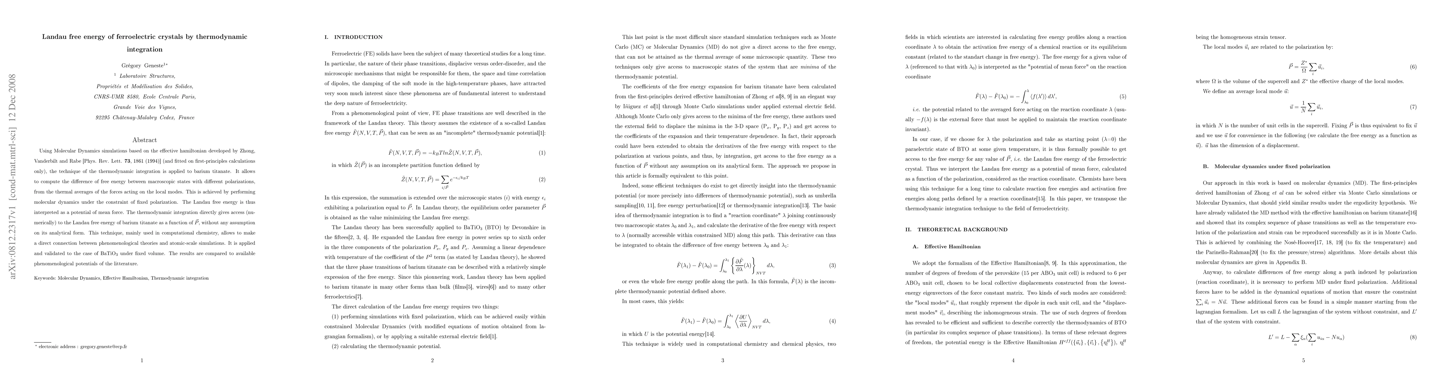 This paper uses thermodynamic integration and Molecular Dynamics simulations to compute the Landau free energy of ferroelectric barium titanate, providing a direct link between phenomenological theories and atomic-scale simulations. The results are validated against existing phenomenological potentials and show the technique's effectiveness without assuming the analytical form of the free energy.