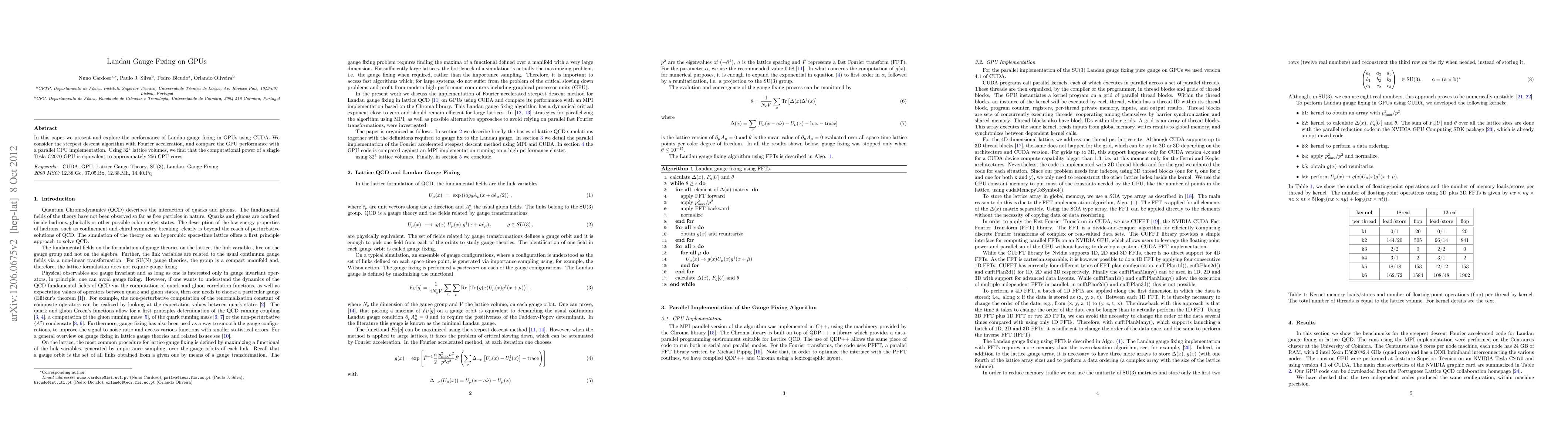 This paper investigates the performance of Landau gauge fixing on GPUs using CUDA, employing the steepest descent algorithm with Fourier acceleration. The study finds that a single Tesla C2070 GPU can match the computational power of around 256 parallel CPU cores.