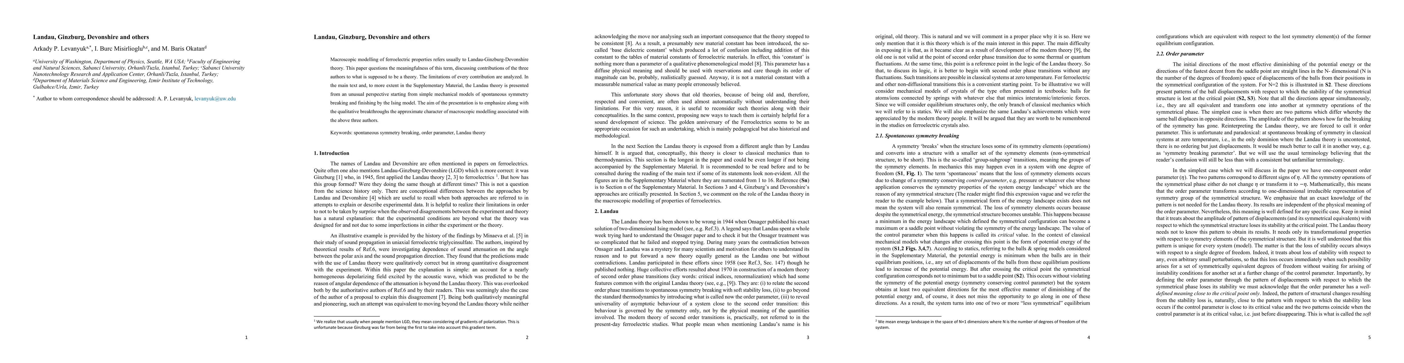 This paper challenges the Landau-Ginzburg-Devonshire theory by questioning the meaningfulness of the term and analyzing its limitations. It presents a new perspective on Landau's work, highlighting its approximate character and the need for further clarification.