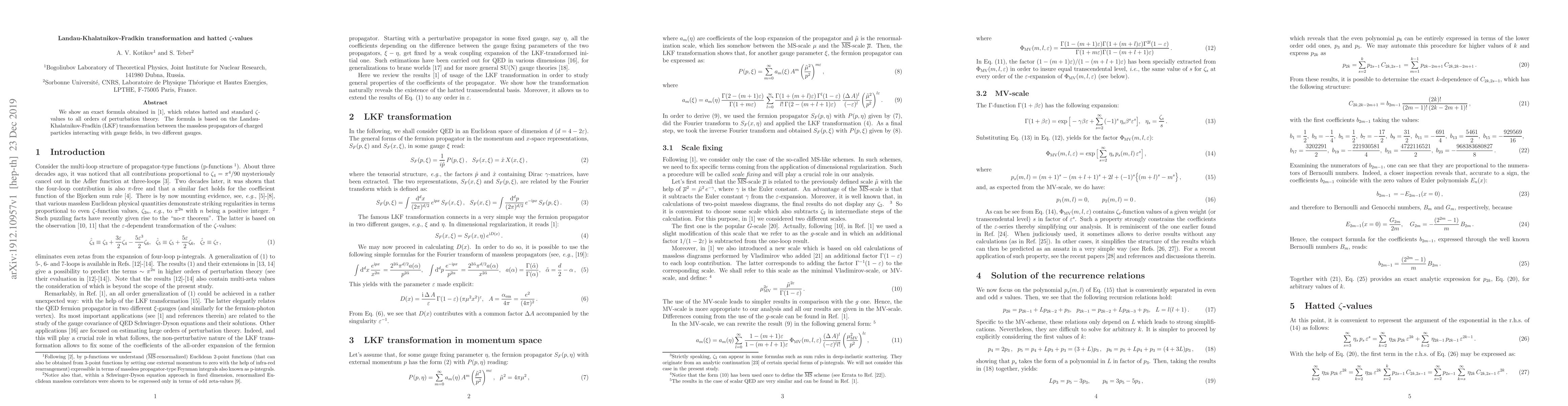 The paper establishes an exact formula linking hatted and standard zeta-values across all perturbation theory orders, utilizing the Landau-Khalatnikov-Fradkin transformation for massless charged particle propagators in different gauges. This transformation facilitates the analysis of interactions in gauge field theories.