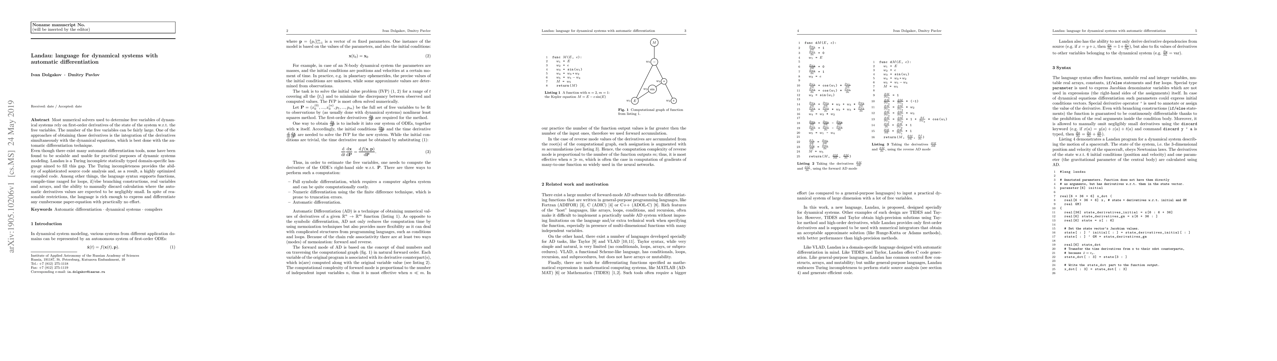 A new language called Landau is introduced to simplify modeling of dynamical systems using automatic differentiation, aiming to fill the gap in scalability and usability of existing tools.