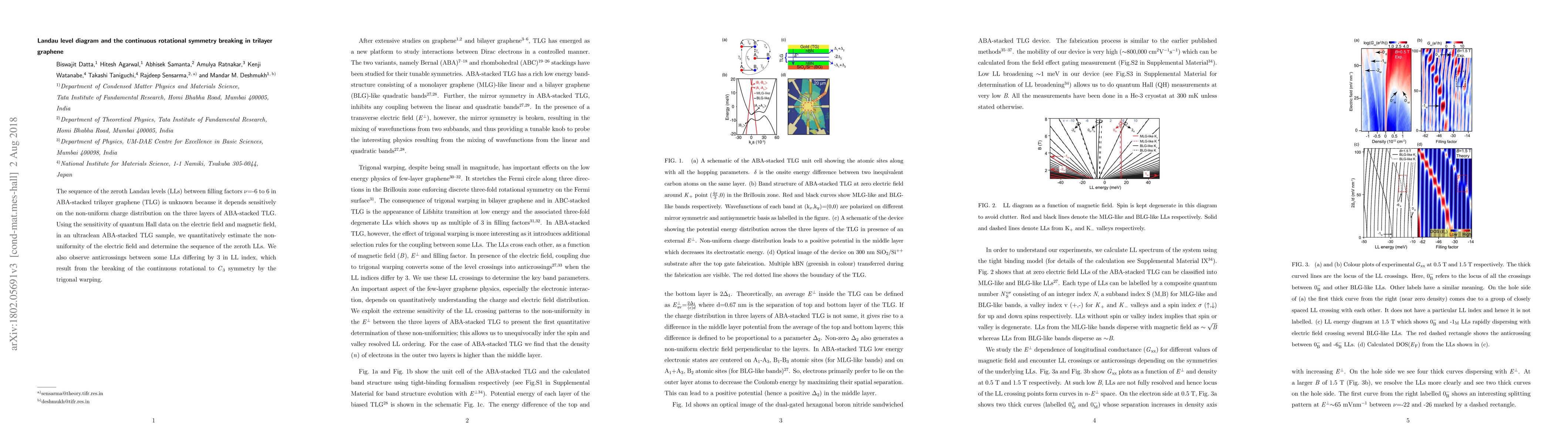 This paper investigates the Landau level sequence in ABA-stacked trilayer graphene, revealing the impact of non-uniform charge distribution and electric field on the quantum Hall effect. It identifies the sequence of zeroth Landau levels and observes symmetry breaking due to trigonal warping, leading to anticrossings between certain levels.