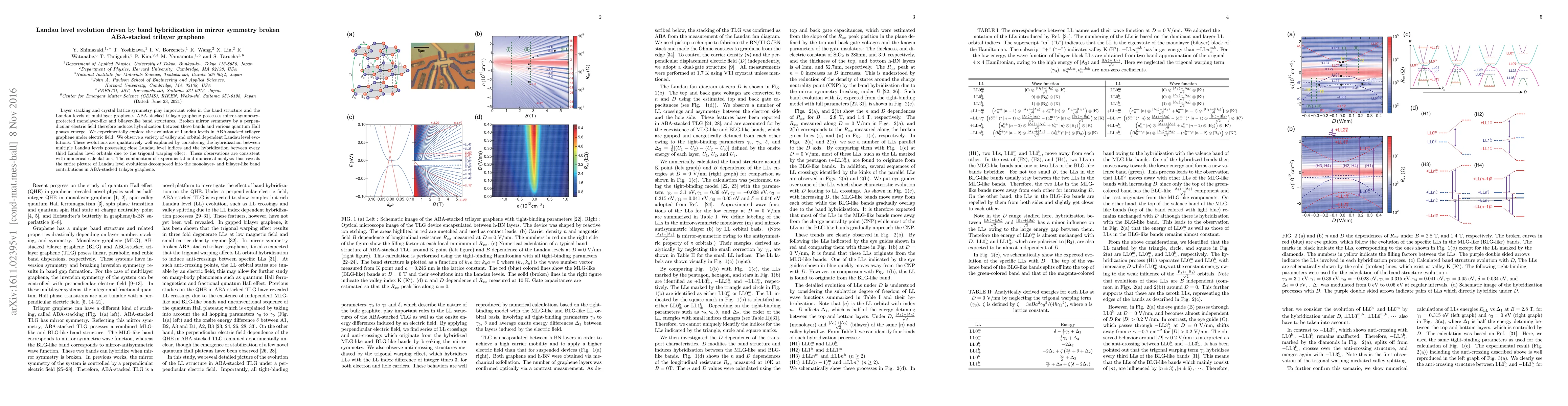 This research investigates the evolution of Landau levels in ABA-stacked trilayer graphene under an electric field, revealing complex valley and orbital dependent changes. The study finds these changes result from band hybridization due to broken mirror symmetry and trigonal warping effects, corroborated by both experimental observations and numerical simulations.