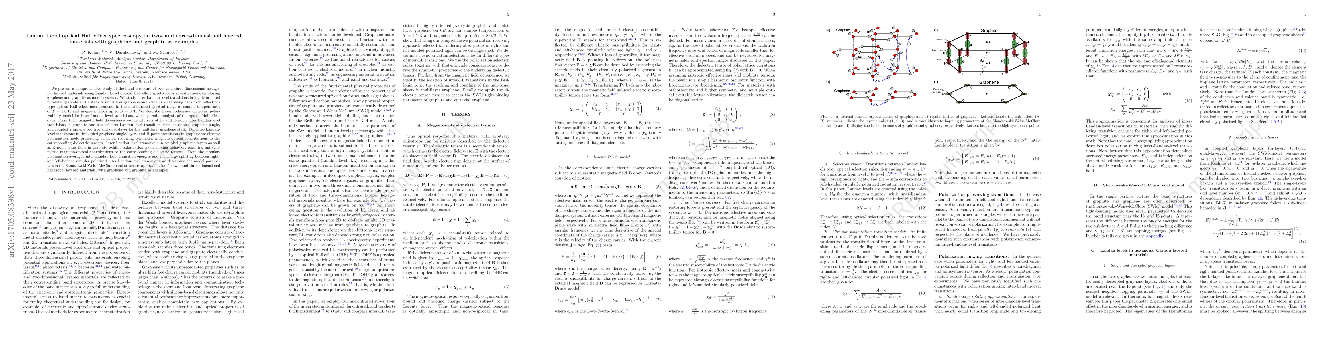 This paper investigates the band structure of two- and three-dimensional hexagonal layered materials using Landau Level optical Hall effect spectroscopy, focusing on graphene and graphite. It identifies inter-Landau-level transitions and analyzes their polarization behavior, determining model parameters for the Slonczewski-Weiss-McClure band structure approximation.
