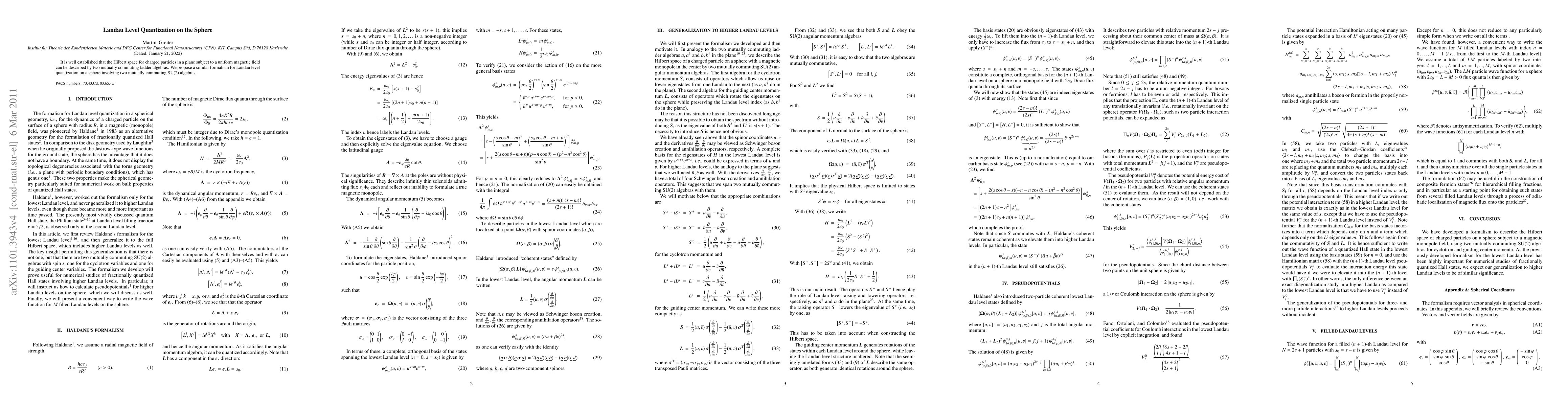 This paper proposes a formalism for Landau level quantization on a sphere, utilizing two mutually commuting SU(2) algebras, analogous to the ladder algebras used in plane quantization under a uniform magnetic field. The approach aims to describe the Hilbert space for charged particles in this new geometric setting.