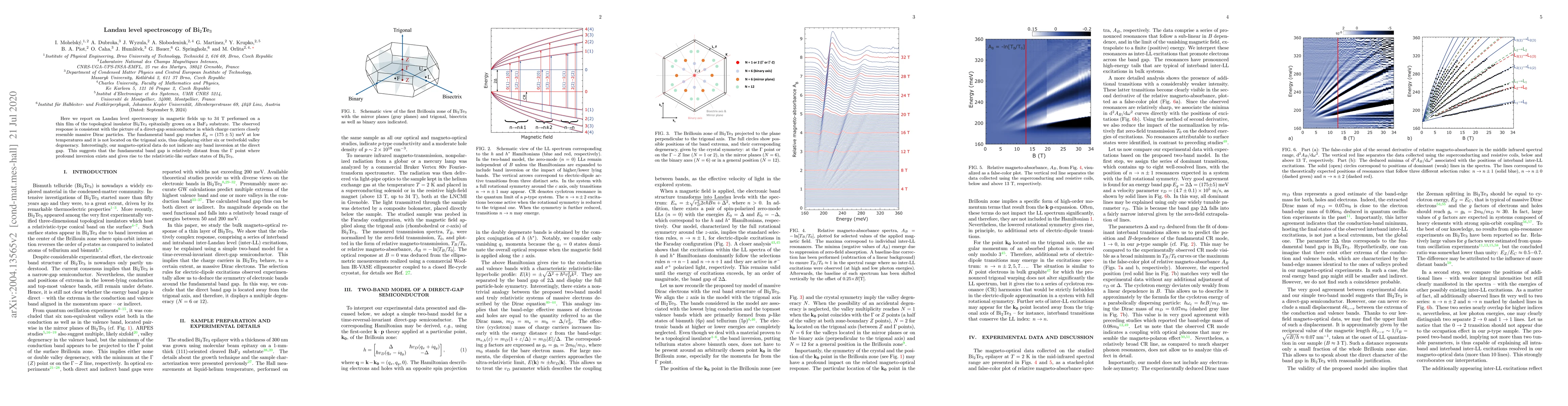 The research paper reports on Landau level spectroscopy of Bi$_2$Te$_3$, a topological insulator. Using magnetic fields up to 34T, it confirms Bi$_2$Te$_3$ behaves like a massive Dirac particle semiconductor with a direct band gap of 175±5 meV at low temperatures. Notably, no band inversion was found, suggesting the band gap is distant from the $Gamma$ point, giving rise to relativistic-like surface states.