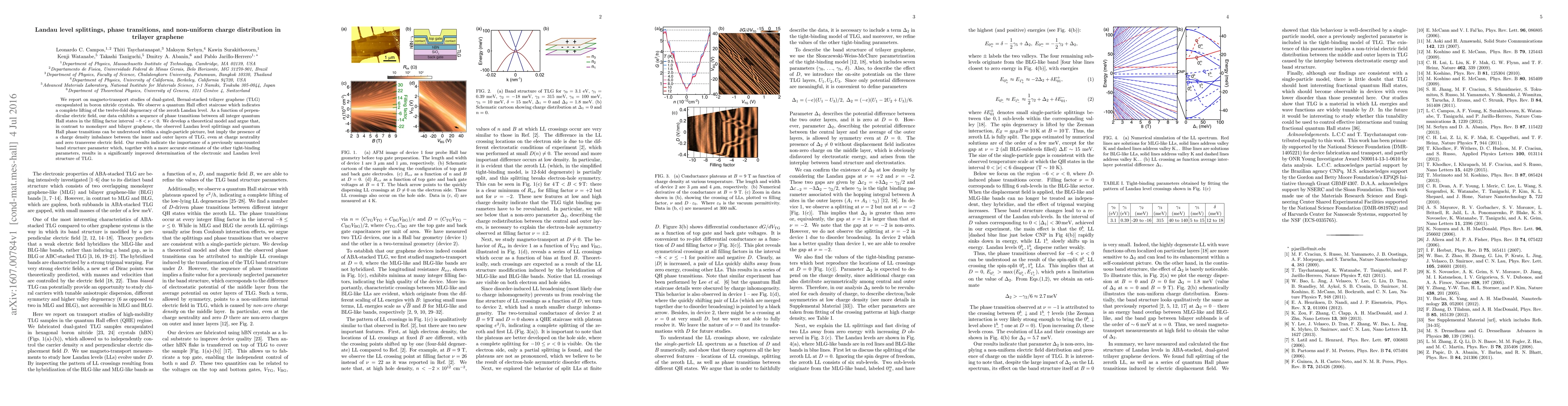 This paper reports on magneto-transport studies of trilayer graphene showing a quantum Hall effect staircase and phase transitions between quantum Hall states, indicating a lifting of the zeroth Landau level's degeneracy. The findings suggest a charge density imbalance in trilayer graphene, necessitating a refined band structure model.