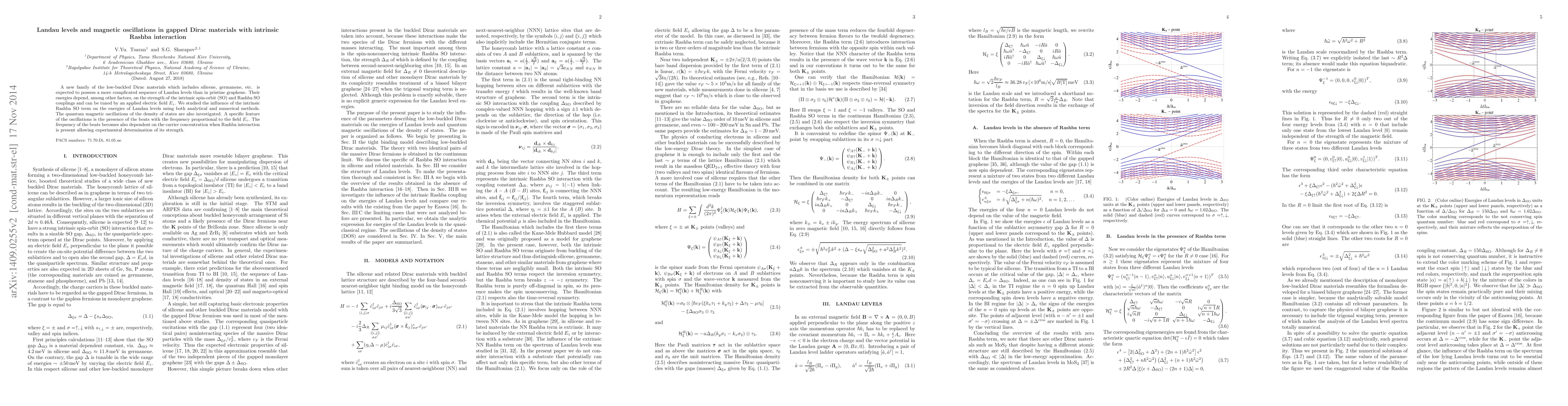 This paper investigates the Landau levels in low-buckled Dirac materials like silicene and germanene, focusing on the influence of intrinsic Rashba spin-orbit coupling. The study reveals complex energy dependencies and quantum magnetic oscillations featuring beats, which can be tuned by an applied electric field and used to determine the strength of the Rashba interaction.