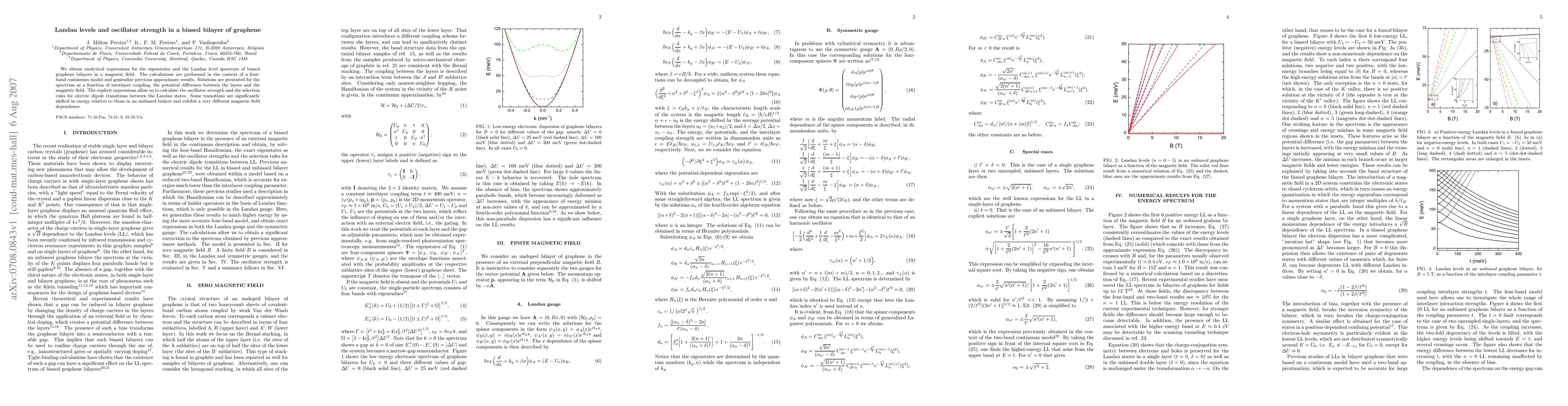 We obtain analytical expressions for the eigenstates and the Landau level spectrum of biased graphene bilayers in a magnetic field. The calculations are performed in the context of a four-band continuum model and generalize previous approximate results. Solutions are presented for the spectrum as a function of interlayer coupling, the potential difference between the layers and the magnetic field. The explicit expressions allow us to calculate the oscillator strength and the selection rules for electric dipole transitions between the Landau states. Some transitions are significantly shifted in energy relative to those in an unbiased bialyer and exhibit a very different magnetic field dependence.