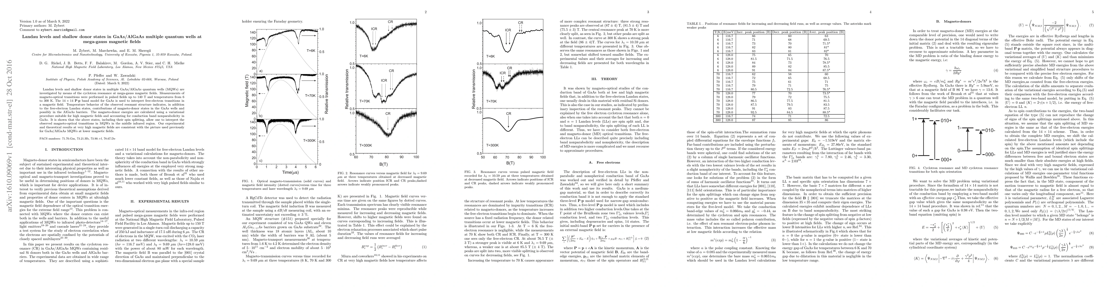 This paper investigates Landau levels and shallow donor states in GaAs/AlGaAs multiple quantum wells using cyclotron resonance at mega-gauss magnetic fields, revealing contributions from magneto-donor states and confirming the applicability of high-field models for interpreting magneto-optical transitions.
