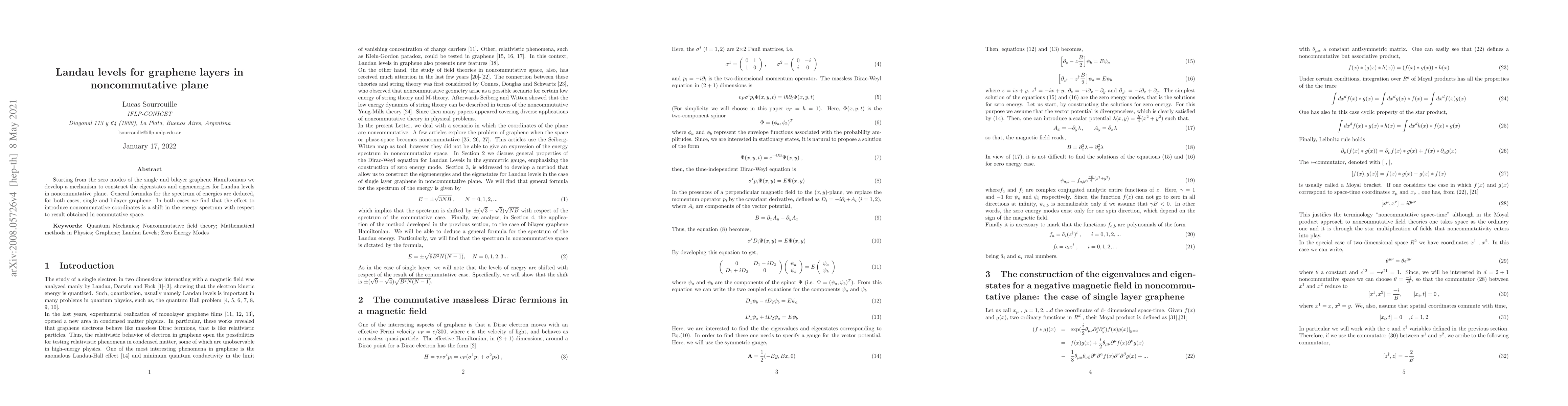 This paper develops a method to determine the eigenstates and eigenenergies for Landau levels in graphene layers on a noncommutative plane, finding that introducing noncommutative coordinates shifts the energy spectrum compared to commutative space. General formulas for the energy spectrum are derived for both single and bilayer graphene configurations.