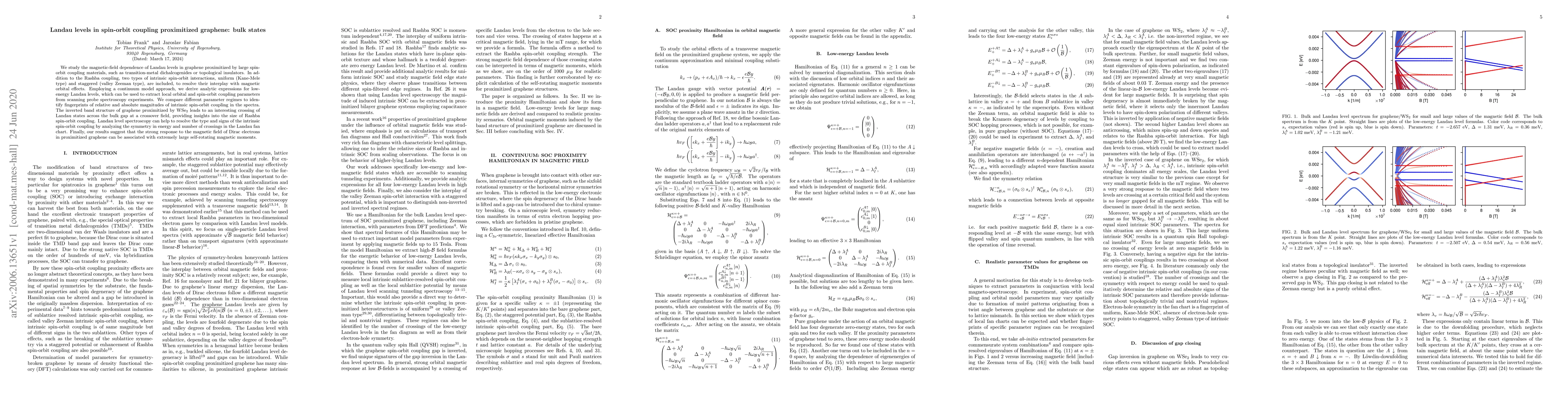 This study investigates the magnetic-field dependence of Landau levels in graphene proximitized by materials with strong spin-orbit coupling, focusing on the interplay between Rashba coupling and intrinsic spin-orbit interactions. Analytical expressions derived for low-energy Landau levels provide insights into parameters from spectroscopy experiments and reveal signatures of intrinsic spin-orbit coupling types and magnitudes.