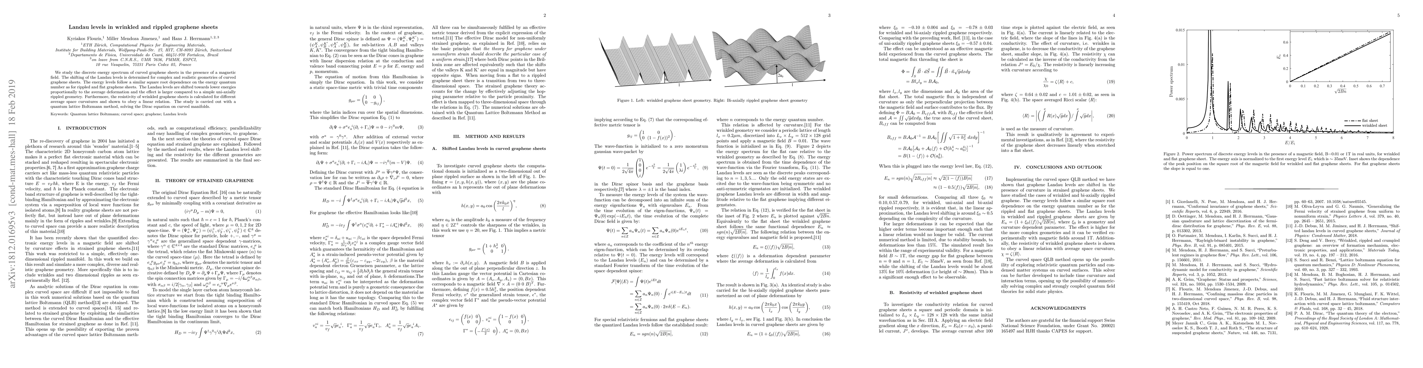 This paper investigates the effect of deformations like wrinkles and ripples on the Landau levels in graphene under a magnetic field, revealing that curvature shifts these levels towards lower energies proportionally to the deformation extent. The resistivity of such curved graphene sheets follows a linear relation with space curvature, analyzed using a quantum lattice Boltzmann method.