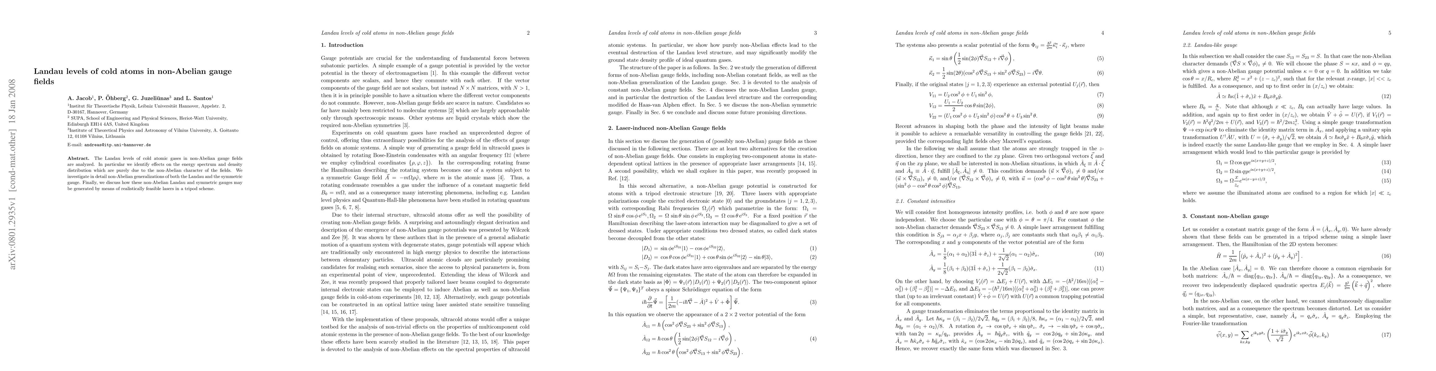 This paper analyzes the Landau levels of cold atomic gases in non-Abelian gauge fields, identifying unique effects on the energy spectrum and density distribution due to the non-Abelian character. The study details non-Abelian generalizations of both Landau and symmetric gauges and explores their practical generation via laser-based tripod schemes.