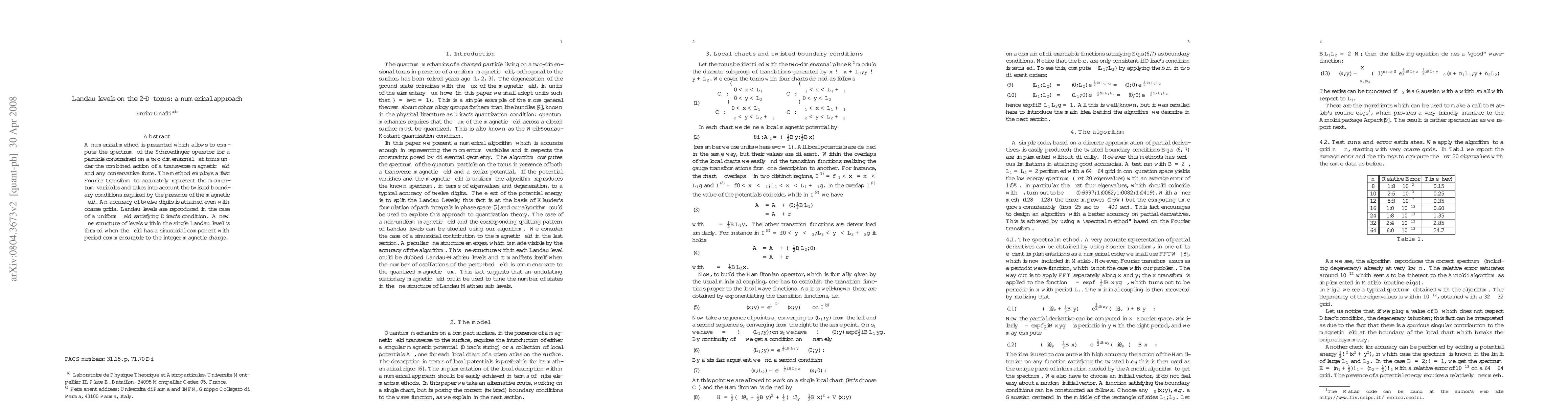 A numerical method is presented which allows to compute the spectrum of the Schroedinger operator for a particle constrained on a two dimensional flat torus under the combined action of a transverse magnetic field and any conservative force. The method employs a fast Fourier transform to accurately represent the momentum variables and takes into account the twisted boundary conditions required by the presence of the magnetic field. An accuracy of twelve digits is attained even with coarse grids. Landau levels are reproduced in the case of a uniform field satisfying Dirac's condition. A new fine structure of levels within the single Landau level is formed when the field has a sinusoidal component with period commensurable to the integer magnetic charge.