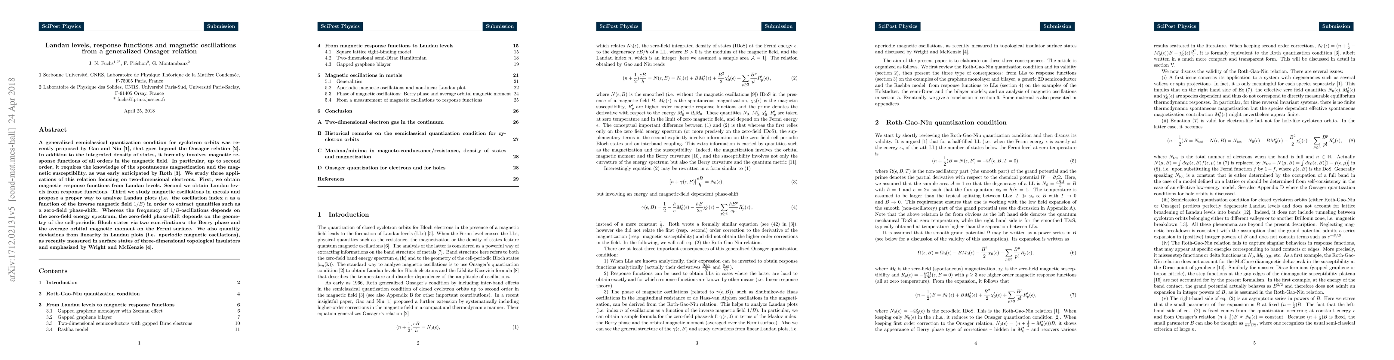 Researchers used a generalized Onsager relation to study magnetic response functions in 2D electrons, obtaining Landau levels from response functions and analyzing magnetic oscillations to extract quantities such as zero-field phase-shifts.