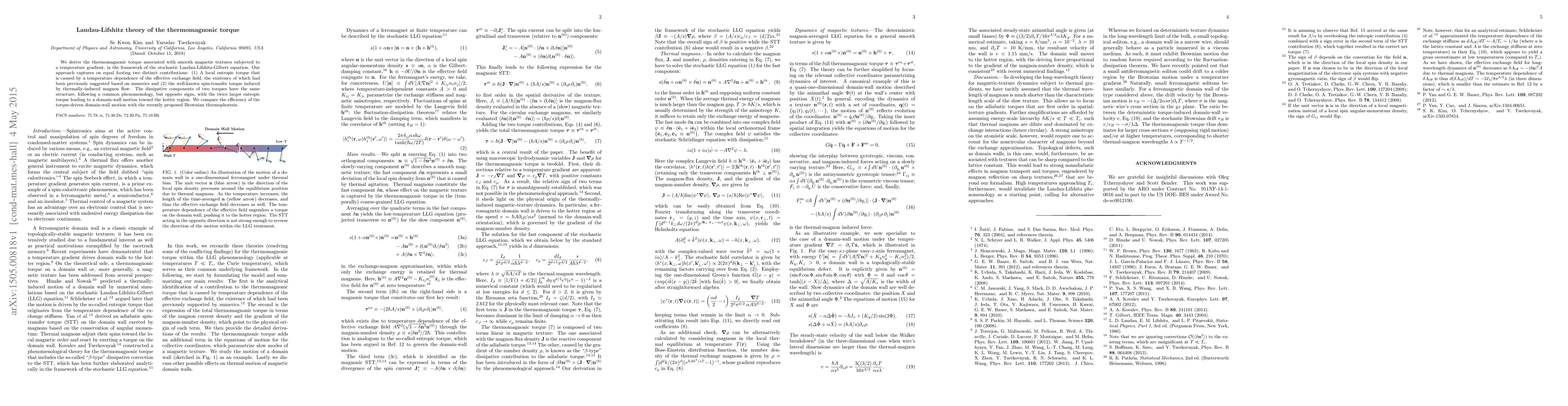 We derive the thermomagnonic torque associated with smooth magnetic textures subjected to a temperature gradient, in the framework of the stochastic Landau-Lifshitz-Gilbert equation. Our approach captures on equal footing two distinct contributions: (1) A local entropic torque that is caused by a temperature dependence of the effective exchange field, the existence of which had been previously suggested based on numerics and (2) the well-known spin-transfer torque induced by thermally-induced magnon flow. The dissipative components of two torques have the same structure, following a common phenomenology, but opposite signs, with the twice larger entropic torque leading to a domain-wall motion toward the hotter region. We compare the efficiency of the torque-driven domain-wall motion with the recently proposed Brownian thermophoresis.