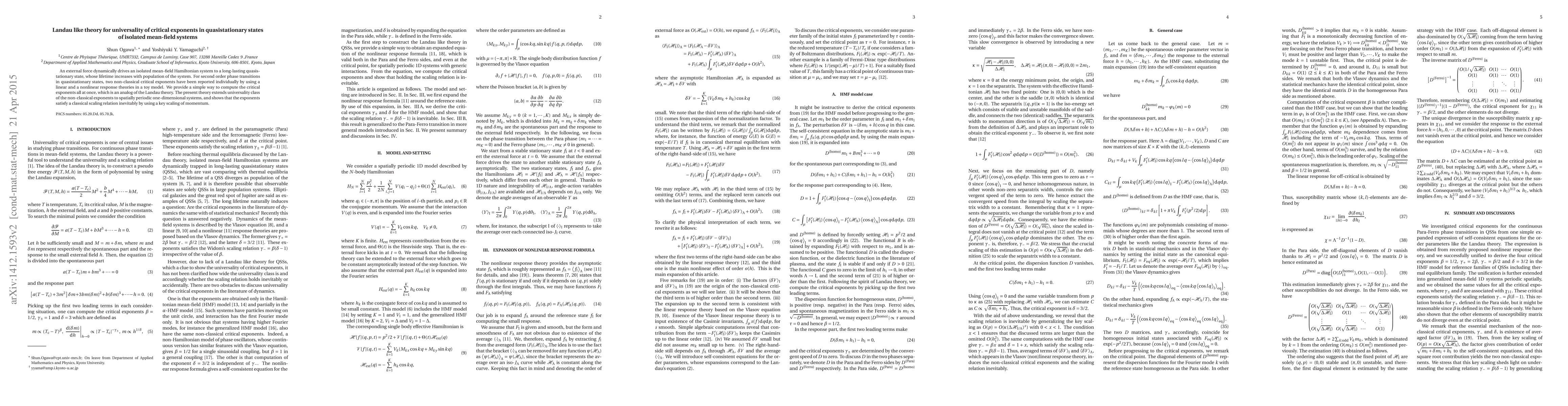 This paper proposes a Landau-like theory for computing critical exponents in quasistationary states of isolated mean-field systems driven by an external force. It extends the universality class of non-classical exponents to one-dimensional systems and demonstrates that these exponents follow classical scaling relations.