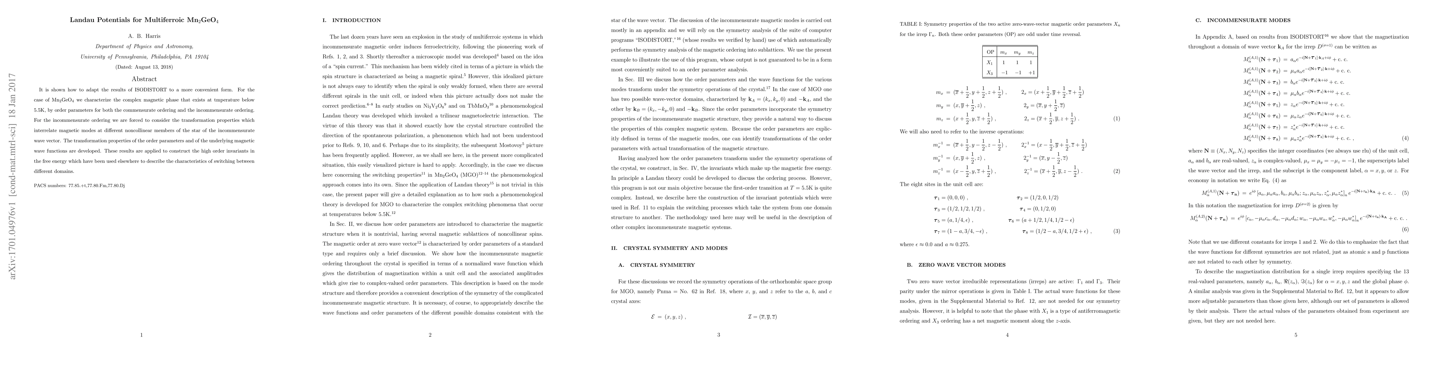 A high-order Landau potential for Mn_2GeO_4 is developed.