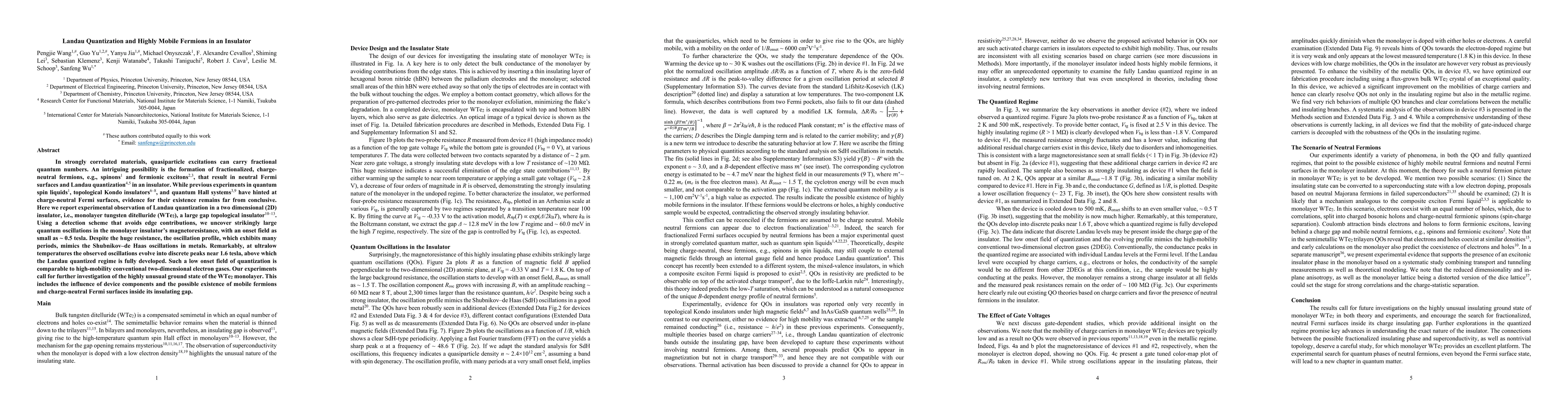 This paper reports the experimental observation of Landau quantization in monolayer tungsten ditelluride (WTe₂), demonstrating large quantum oscillations in its magnetoresistance indicative of charge-neutral Fermi surfaces. The findings suggest the presence of highly mobile fermions in an insulating material, challenging conventional understanding of such phenomena.