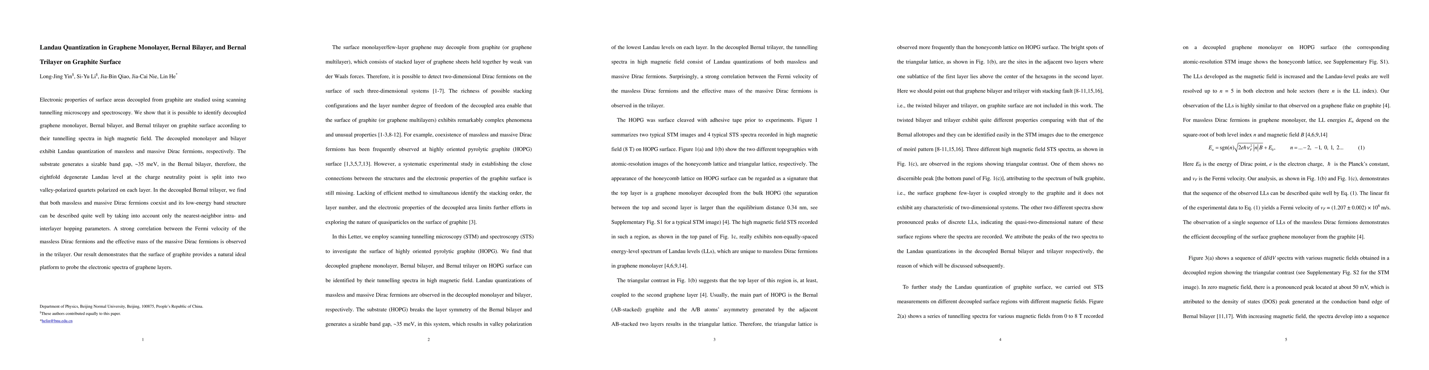This research uses scanning tunnelling microscopy to identify Landau quantization in graphene monolayer, bilayer, and trilayer on graphite, revealing distinct electronic properties and Fermi velocity correlations, showcasing graphite's surface as an ideal platform for graphene studies.