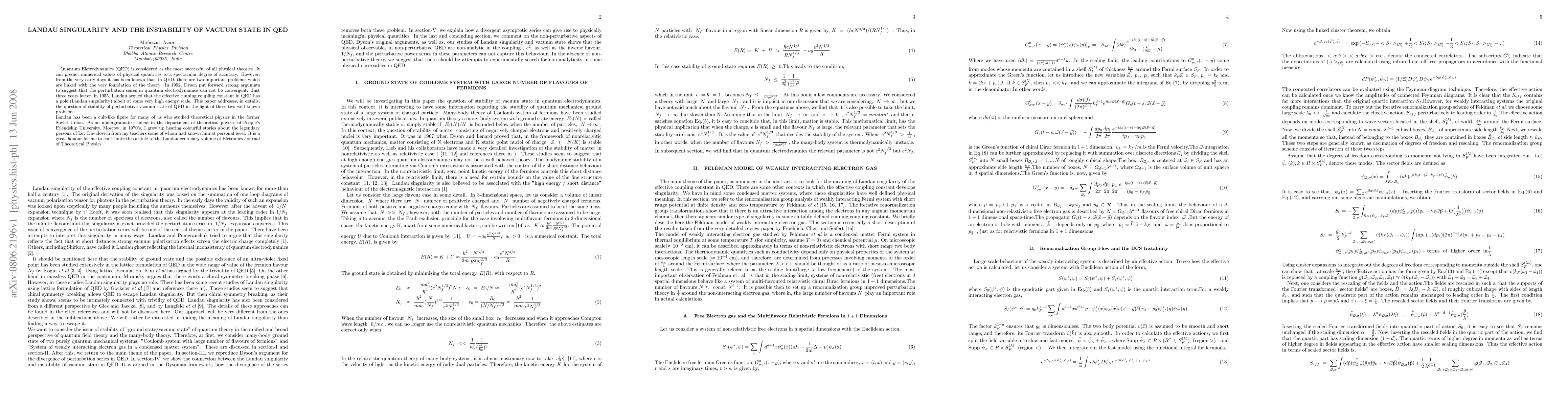 This paper investigates the stability of the perturbative vacuum state in Quantum Electrodynamics (QED) in light of the Landau singularity and Dyson's arguments on the non-convergence of the perturbation series, highlighting foundational issues in the theory. The author pays tribute to the influential physicist Lev Landau, reflecting on personal anecdotes from their studies in the former Soviet Union.