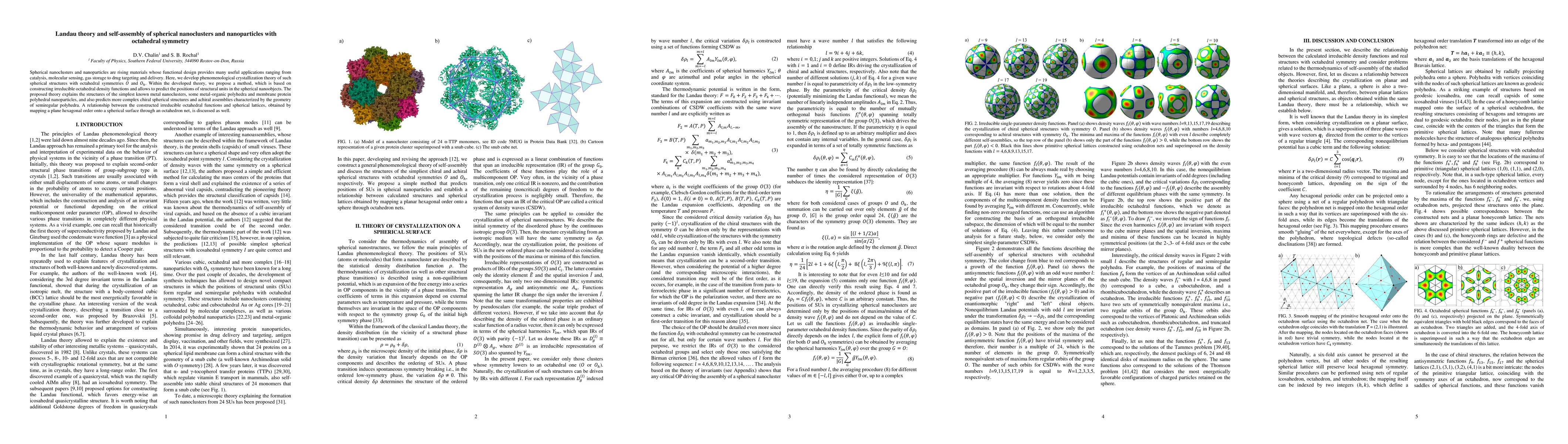 This paper develops a Landau theory to predict the self-assembly of spherical nanoclusters and nanoparticles with octahedral symmetry, proposing a method based on irreducible octahedral density functions to determine structural unit positions. The theory explains known structures and predicts new chiral and semiregular polyhedral assemblies.