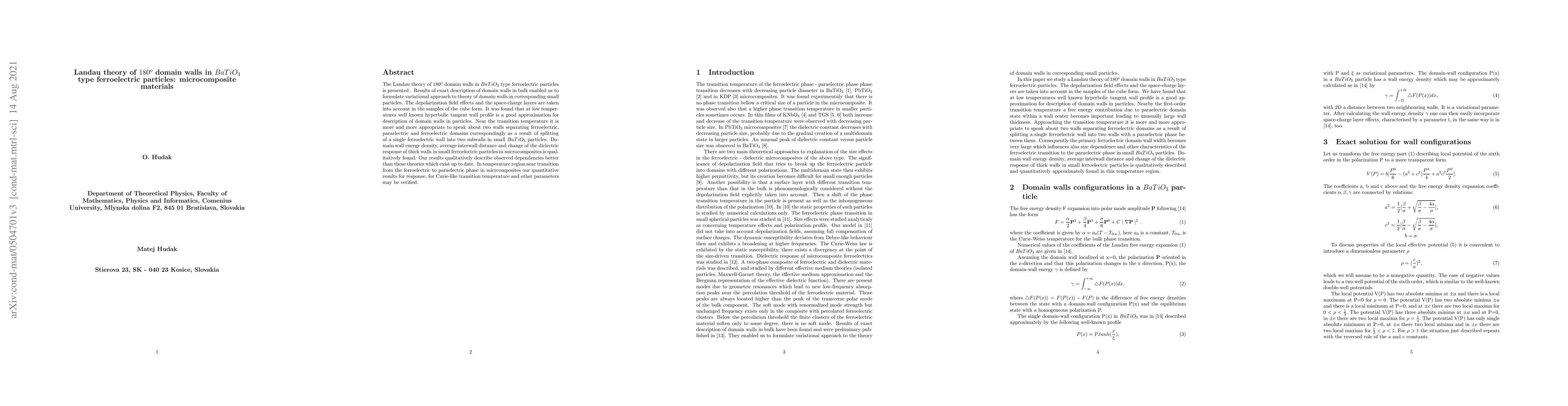 Researchers develop a new theory for 180-degree domain walls in tiny ferroelectric particles like BaTiO3, improving predictions of domain wall behavior near transition temperatures. The study provides quantitative results for response, Curie-like transition temperature, and other properties in microcomposite materials.