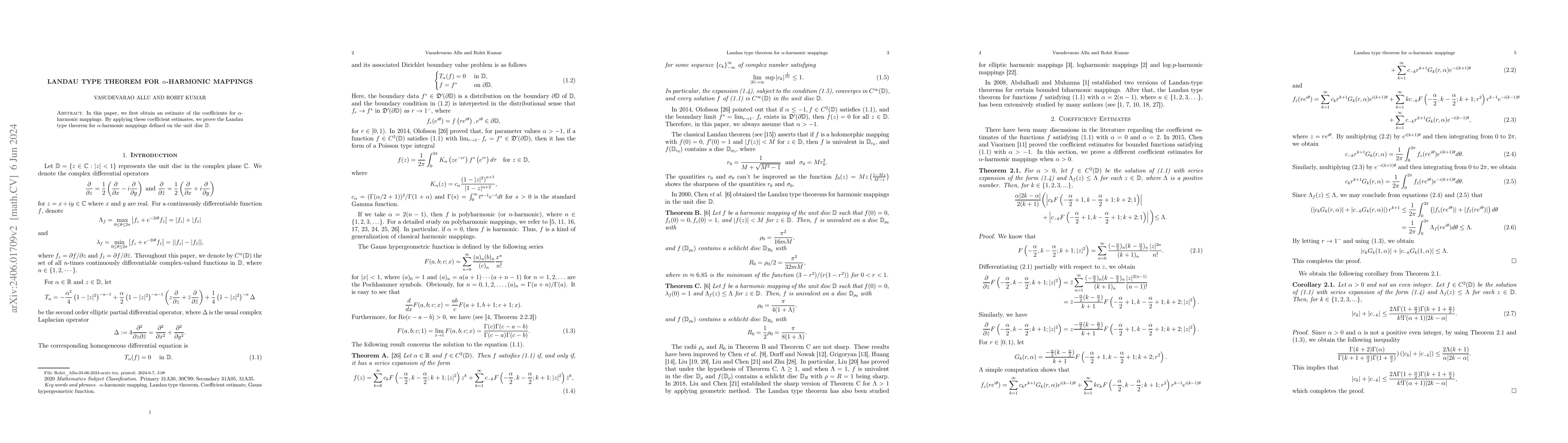 This paper establishes coefficient estimates for $\alpha$-harmonic mappings and uses these estimates to prove a Landau type theorem for such mappings within the unit disc $\ID$.