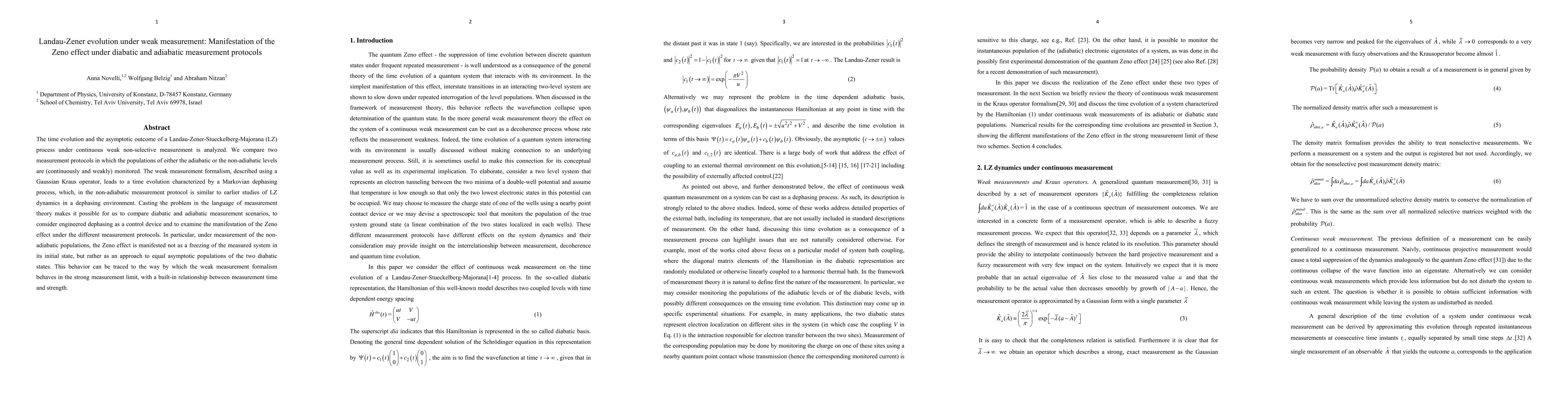 This paper analyzes the Landau-Zener evolution under continuous weak measurement, comparing adiabatic and non-adiabatic measurement protocols. It reveals that the Zeno effect manifests differently under non-adiabatic measurement, leading to equal asymptotic populations rather than freezing in the initial state.