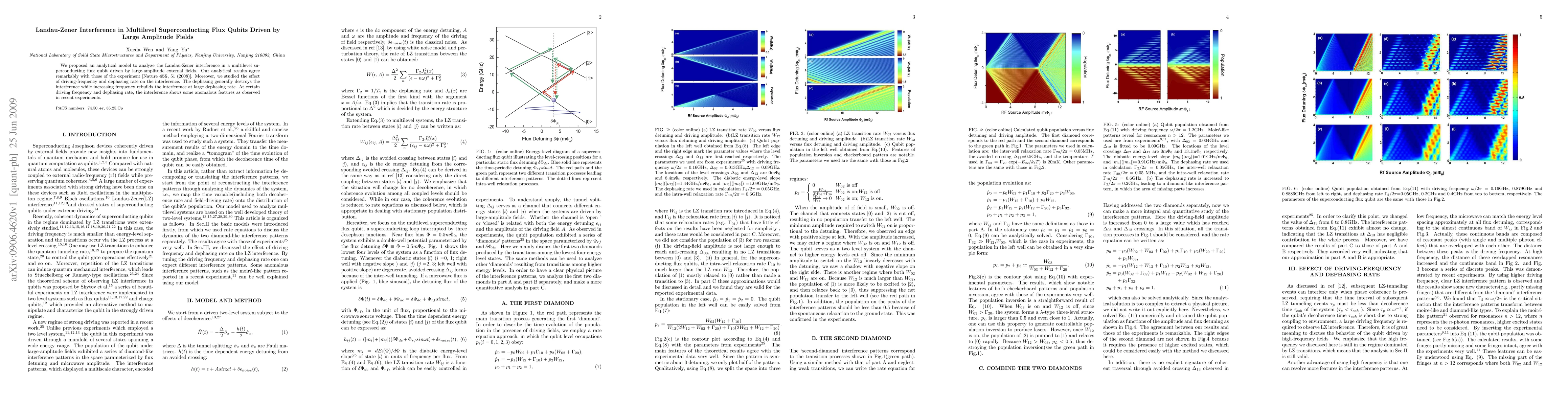 We proposed an analytical model to analyze the Landau-Zener interference in a multilevel superconducting flux qubit driven by large amplitude external fields. Our analytical results agree remarkably with those of the experiment [Nature 455, 51 (2008)]. Moreover, we studied the effect of driving-frequency and dephasing rate on the interference. The dephasing generally destroys the interference while increasing frequency rebuilds the interference at large dephasing rate. At certain driving frequency and dephasing rate, the interference shows some anomalous features as observed in recent experiments.