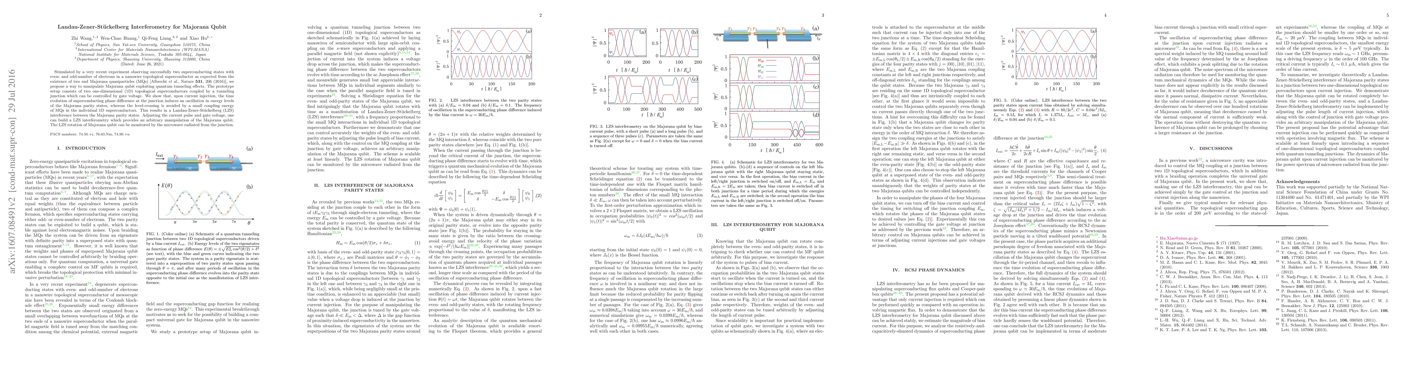 This paper proposes a Landau-Zener-Stückelberg (LZS) interferometry method to manipulate a Majorana qubit using quantum tunneling effects in coupled one-dimensional topological superconductors. The method allows for the arbitrary control of Majorana qubit states through current pulses and gate voltage, with the qubit's state changes monitored via emitted microwave radiation.