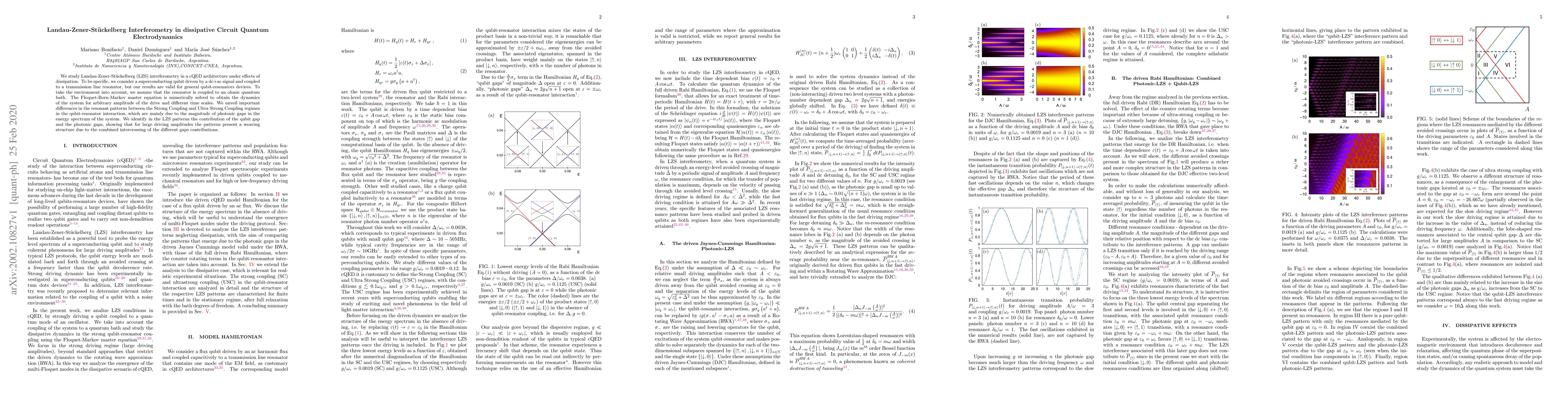 This paper investigates Landau-Zener-Stückelberg interferometry in circuit quantum electrodynamics (cQED) systems under dissipation, revealing distinct resonant patterns in the Strong Coupling and Ultra Strong Coupling regimes due to photonic gap interactions. The study uses the Floquet-Born-Markov master equation to analyze the dynamics, highlighting the weaving structure in interferometry patterns for large driving amplitudes.
