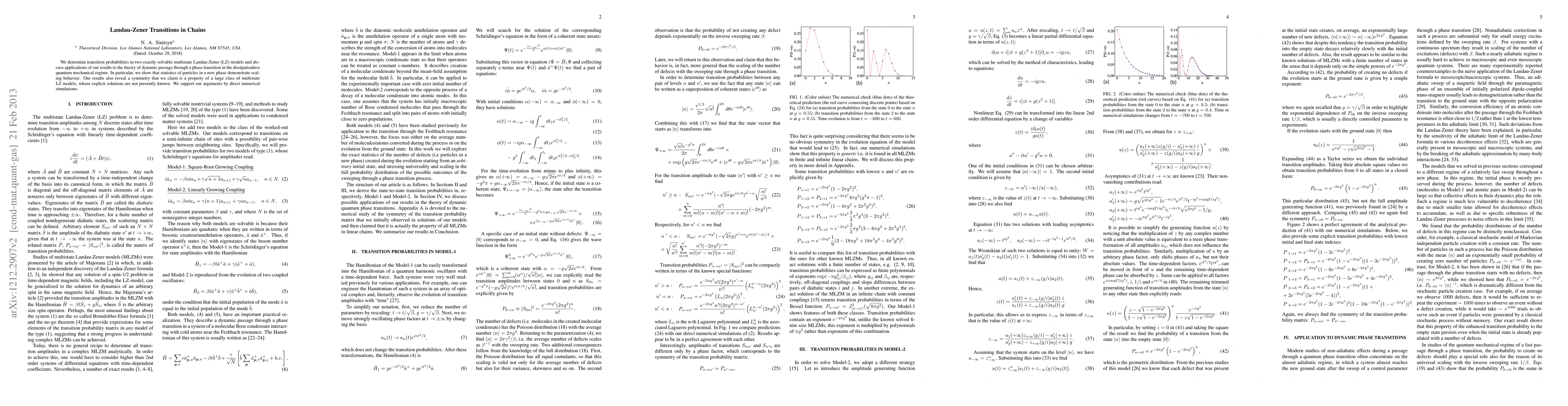 We determine transition probabilities in two exactly solvable multistate Landau-Zener (LZ) models and discuss applications of our results to the theory of dynamic passage through a phase transition in the dissipationless quantum mechanical regime. In particular, we show that statistics of particles in a new phase demonstrate scaling behavior. Our results also reveal a symmetry that we claim is a property of a large class of multistate LZ models, whose explicit solutions are not presently known. We support our arguments by direct numerical simulations.