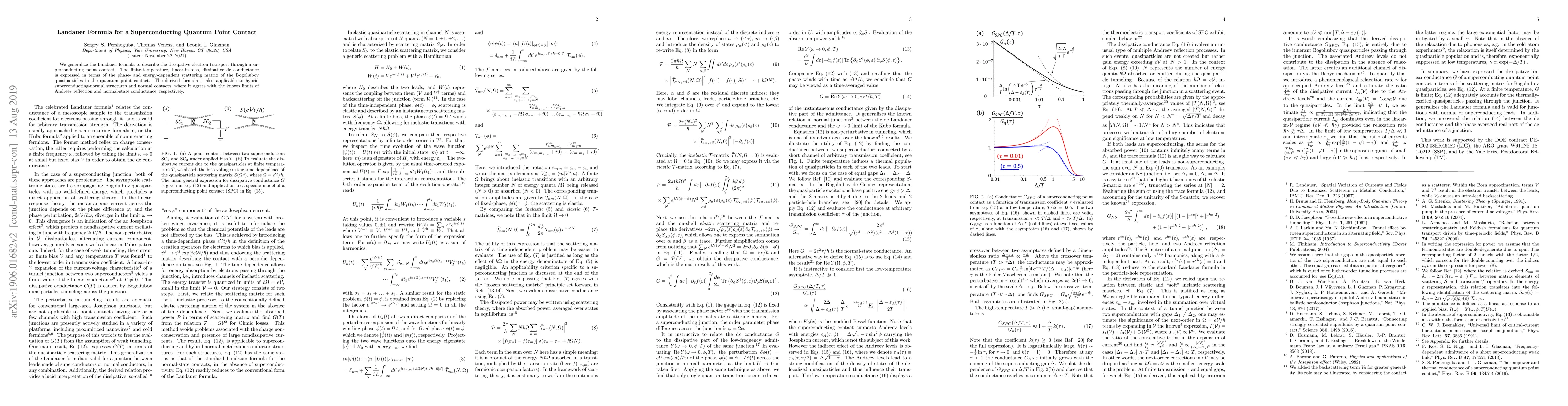 This paper generalizes the Landauer formula to account for electron transport in superconducting quantum point contacts, providing a formula for finite-temperature, linear-bias dissipative DC conductance based on the quasiparticle scattering matrix. The derived formula also applies to hybrid and normal contacts, aligning with known limits of Andreev reflection and normal-state conductance.