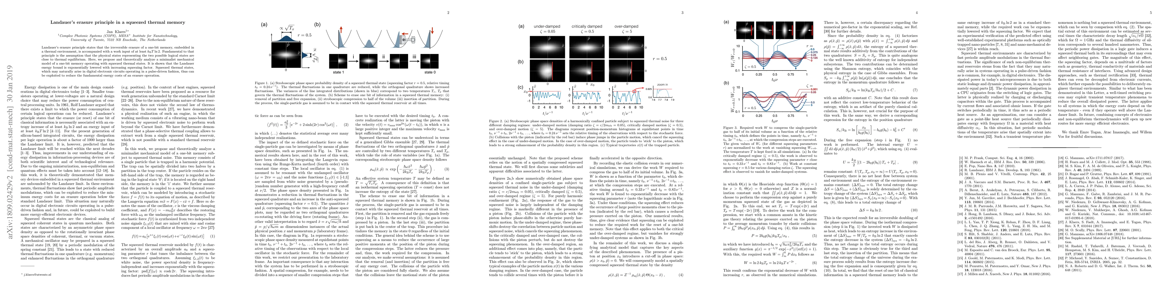 The paper introduces a theoretical framework for a mechanical memory model using squeezed thermal states, demonstrating reduced energy requirements for erasure operations.